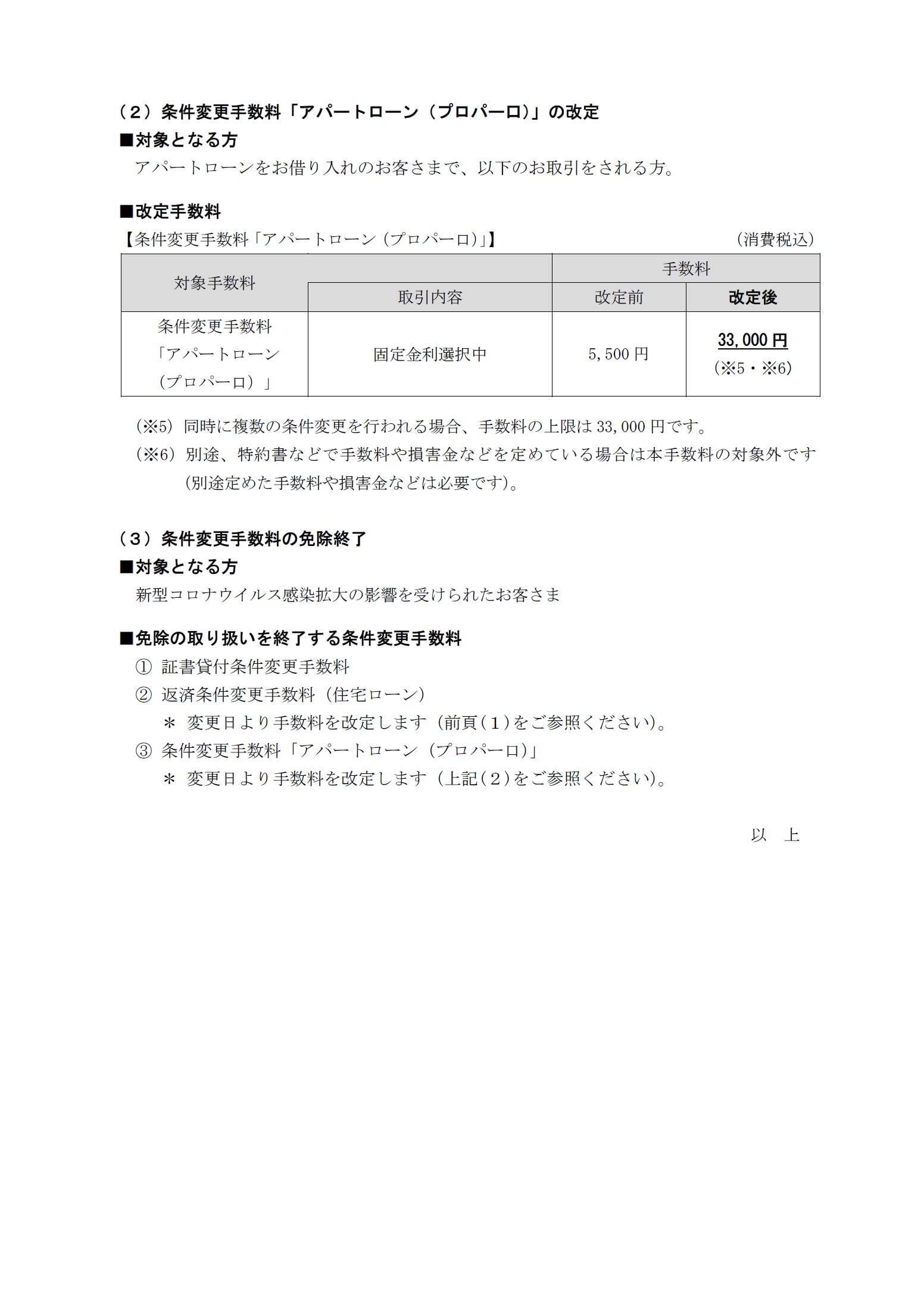 消費性ローン等に関する各種手数料の改定および条件変更手数料の免除の取り扱い終了のお知らせ