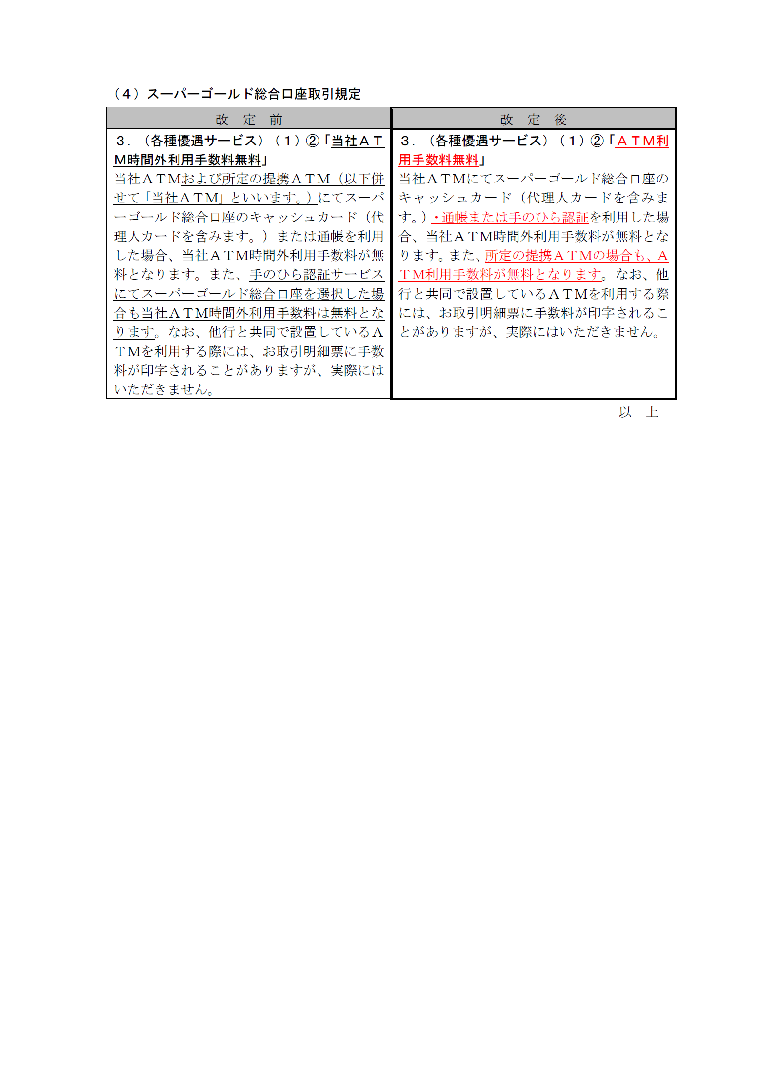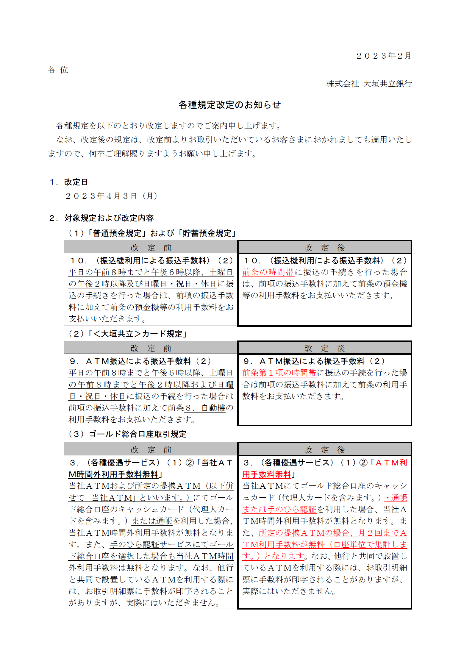 各種規定改定のお知らせ