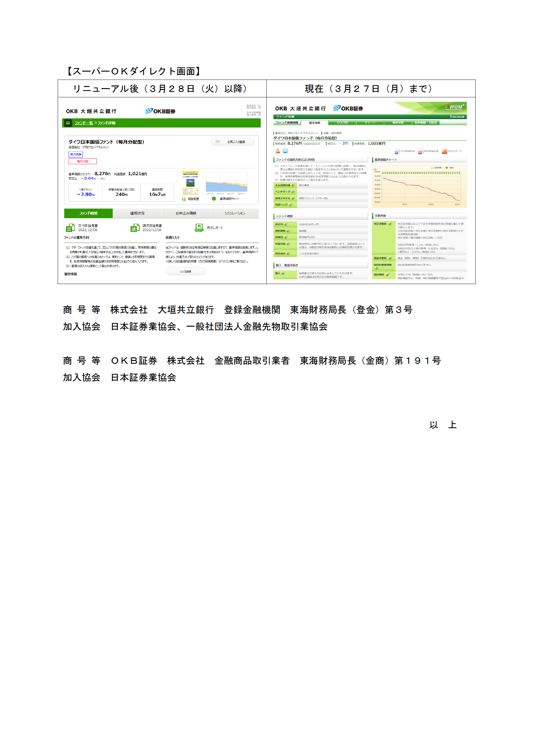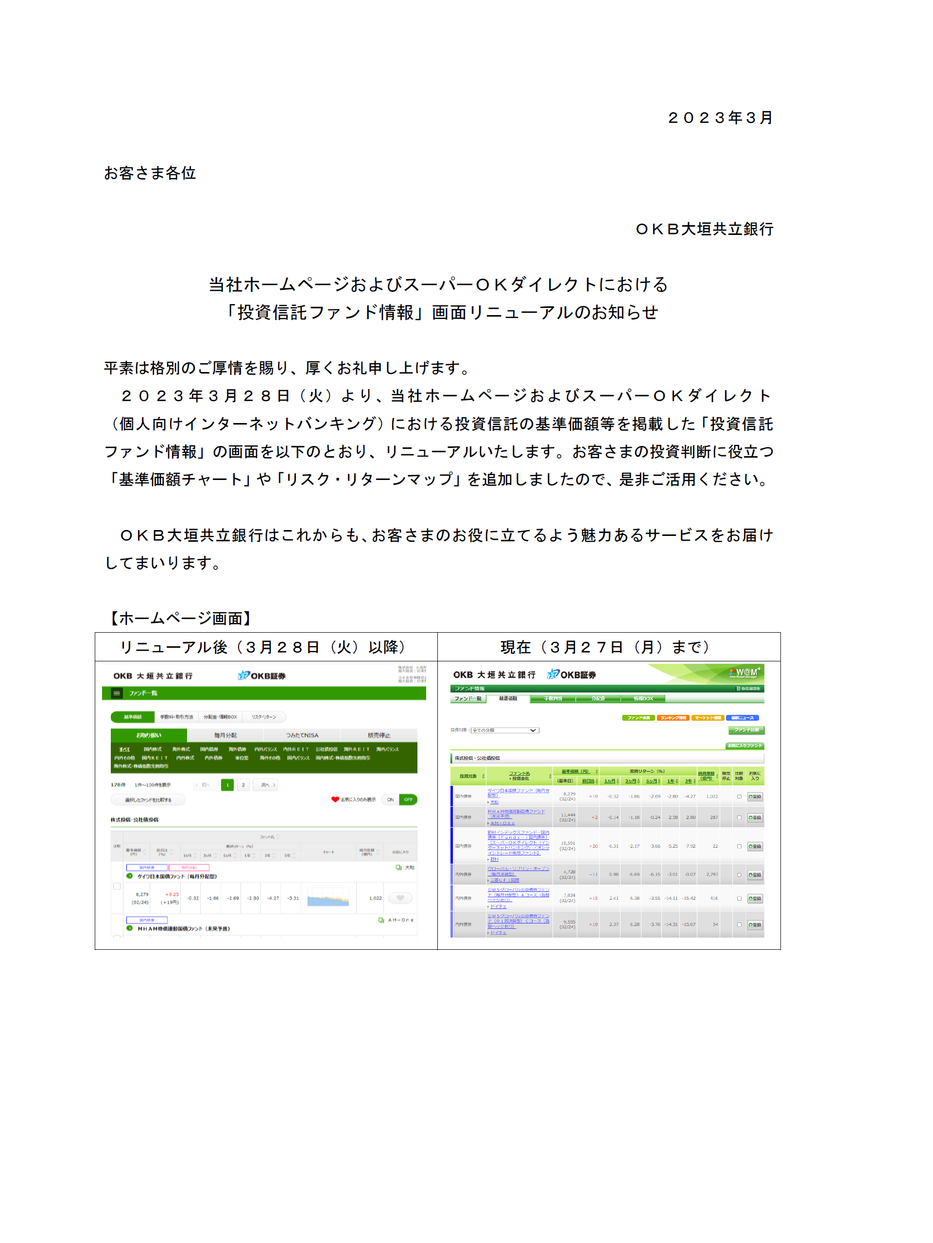 当社ホームページおよびスーパーOKダイレクトにおける「投資信託ファンド情報」画面リニューアルのお知らせ