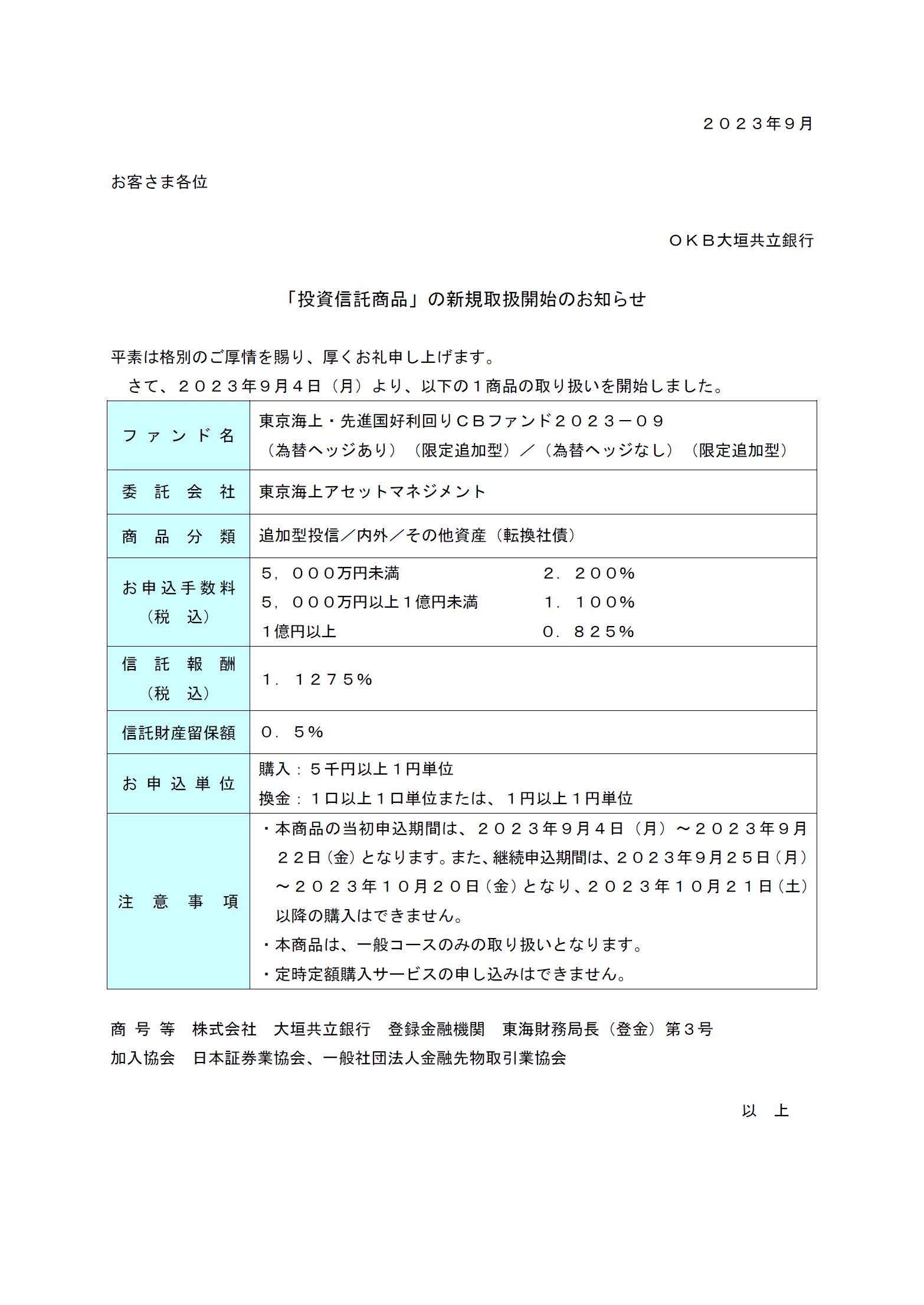 東京海上・先進国好利回りCBファンド2023-09(為替ヘッジなし)(限定追加型)