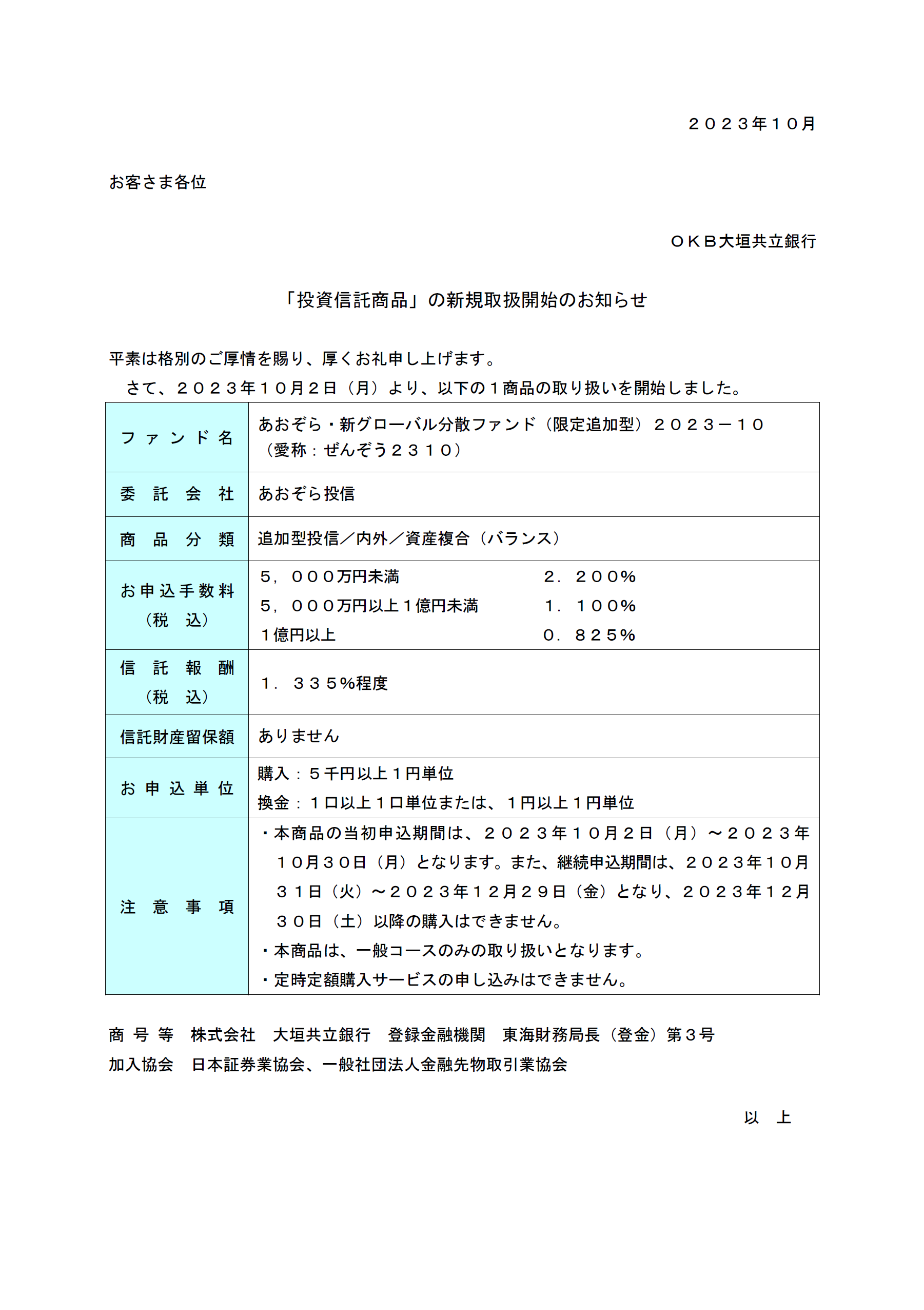 あおぞら・新グローバル分散ファンド(限定追加型)2023-10