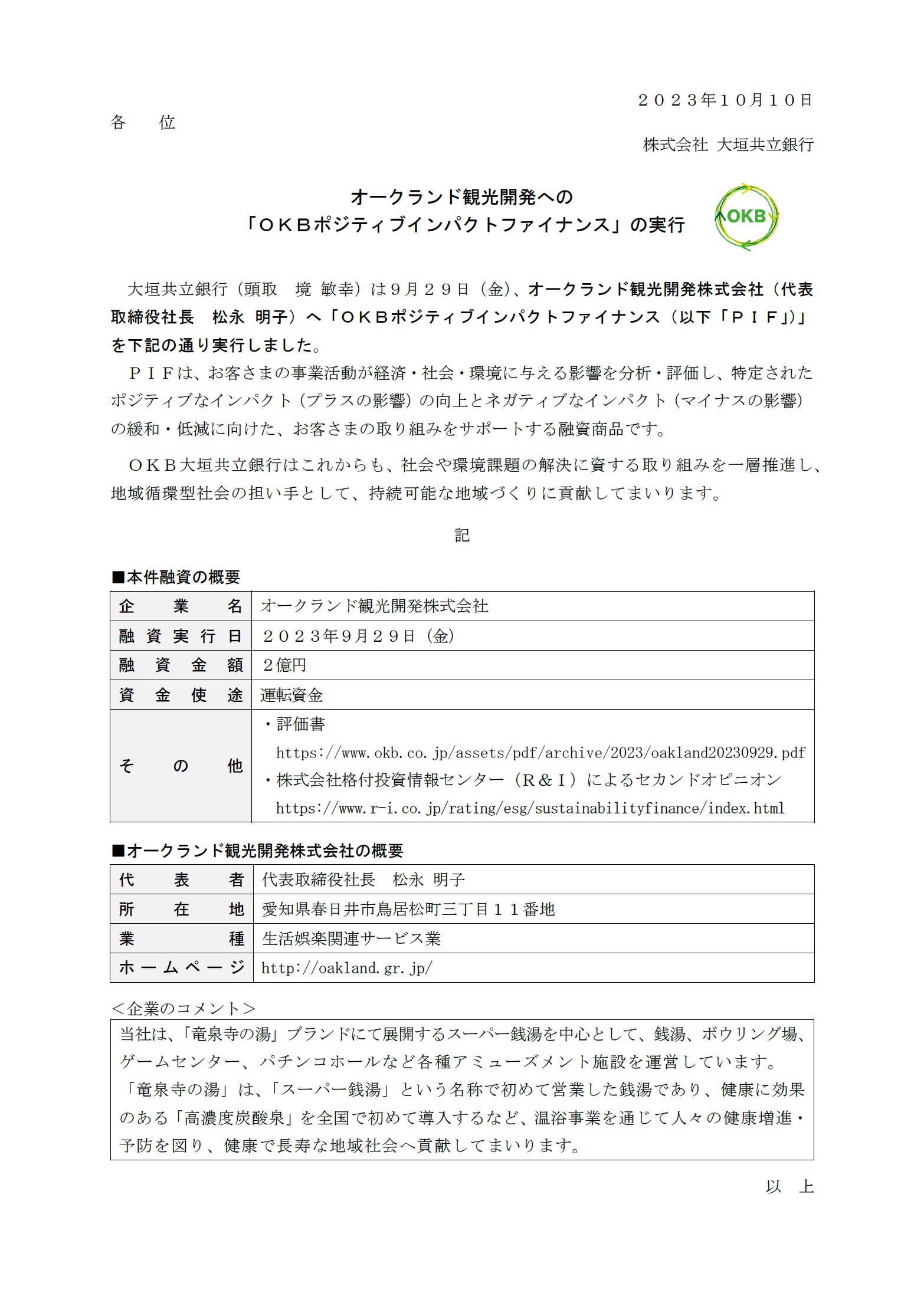 オークランド観光開発への 「OKBポジティブインパクトファイナンス」の実行