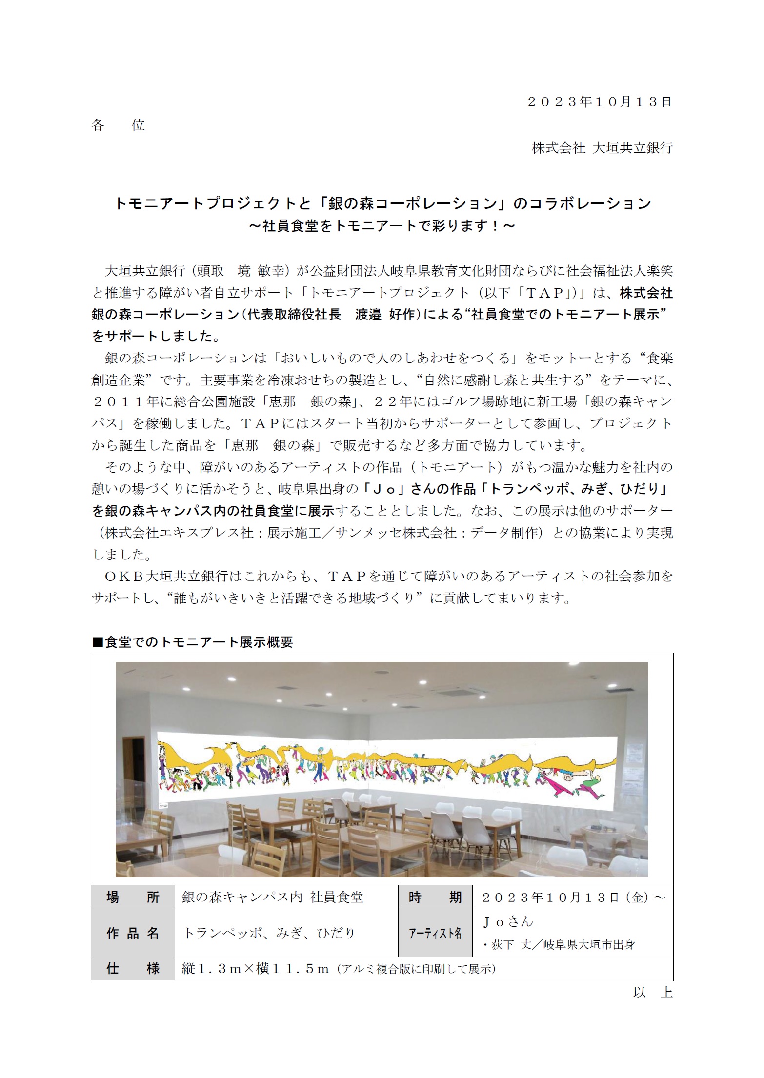 トモニアートプロジェクトと「銀の森コーポレーション」のコラボレーション