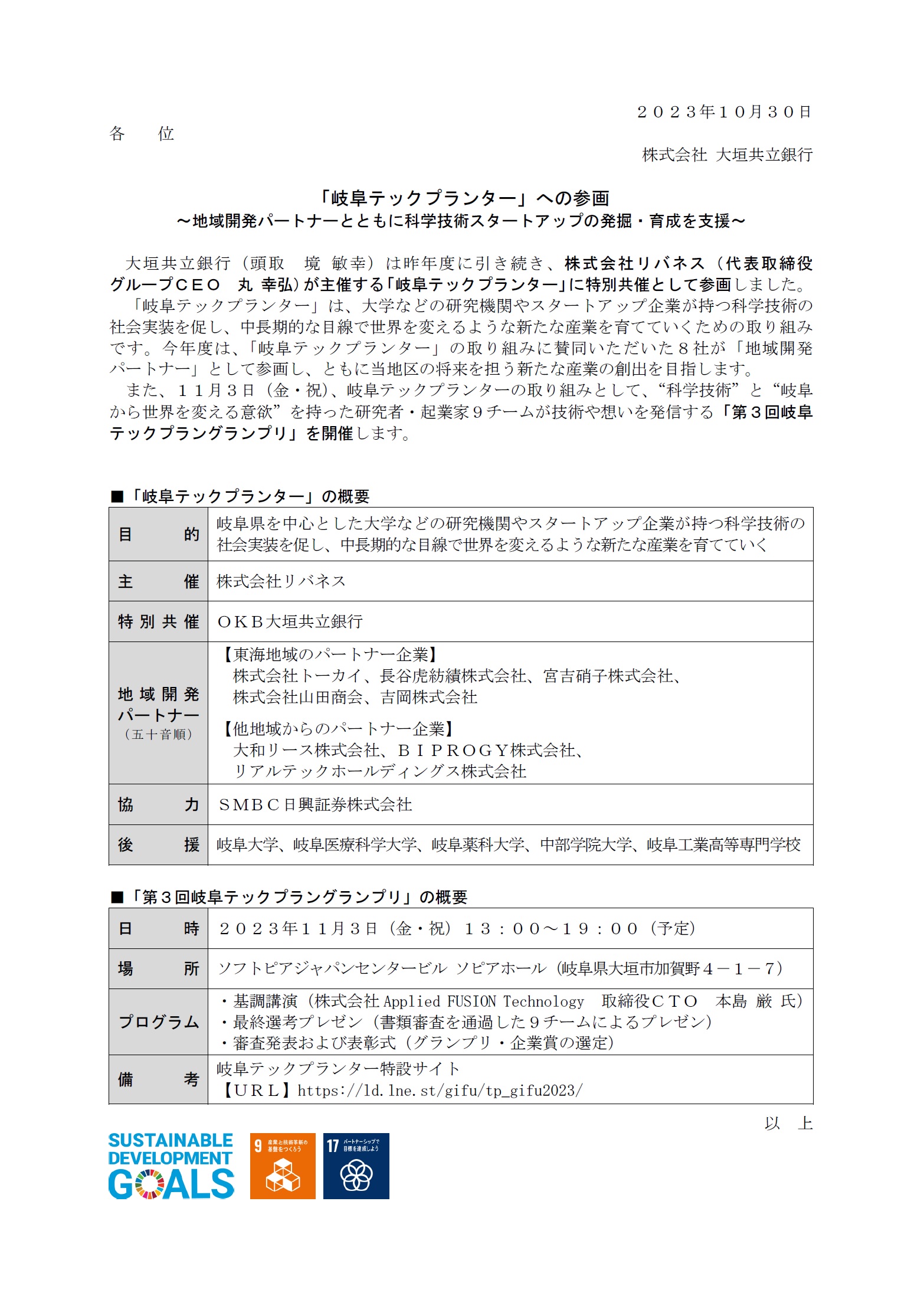「岐阜テックプランター」への参画