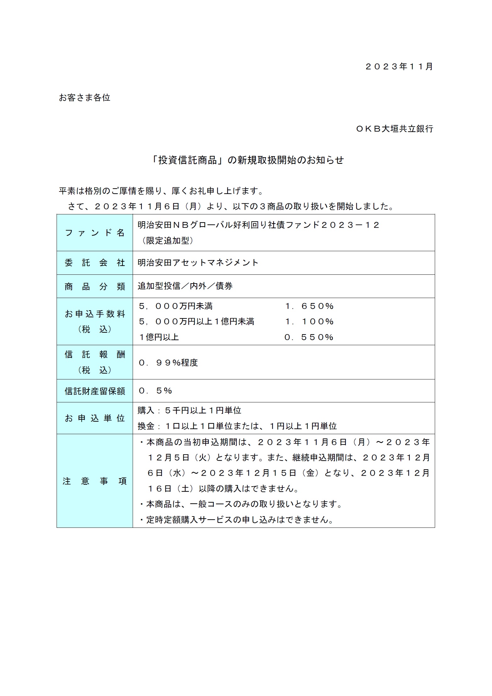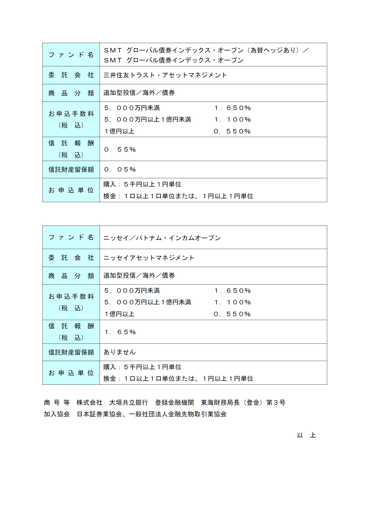 「投資信託商品」の新規取扱開始のお知らせ