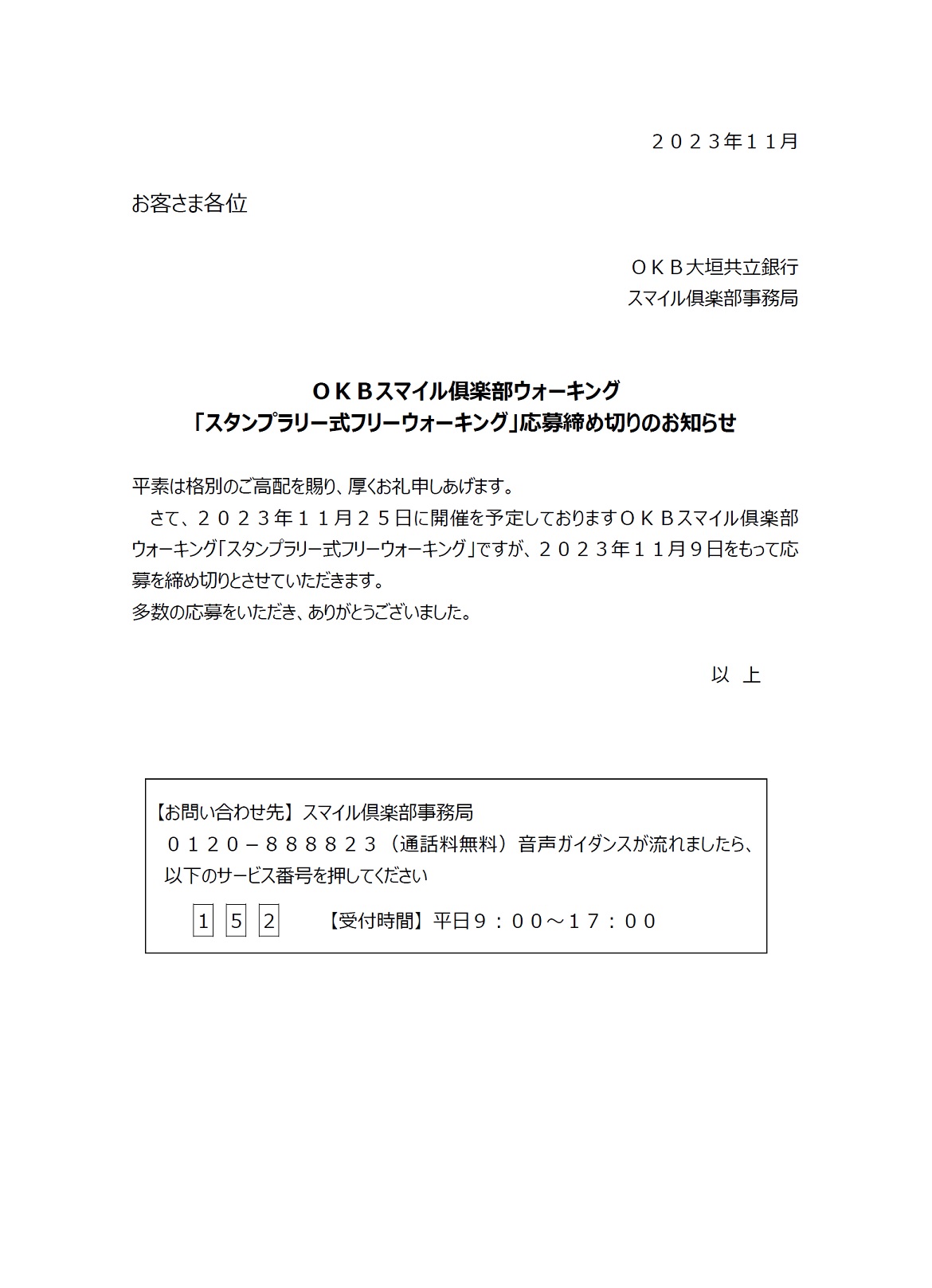 OKBスマイル俱楽部ウォーキング 「スタンプラリー式フリーウォーキング」応募締め切りのお知らせ