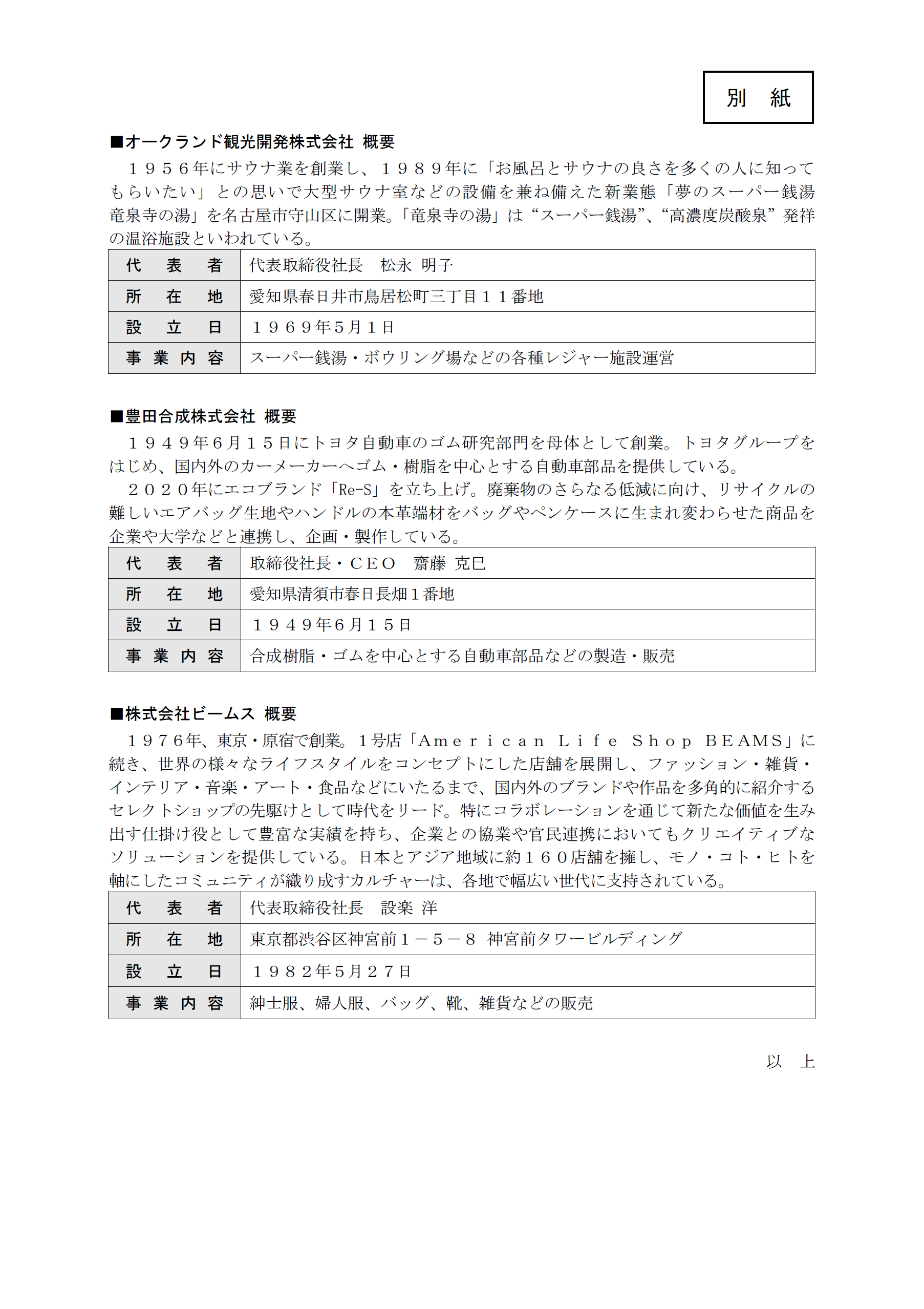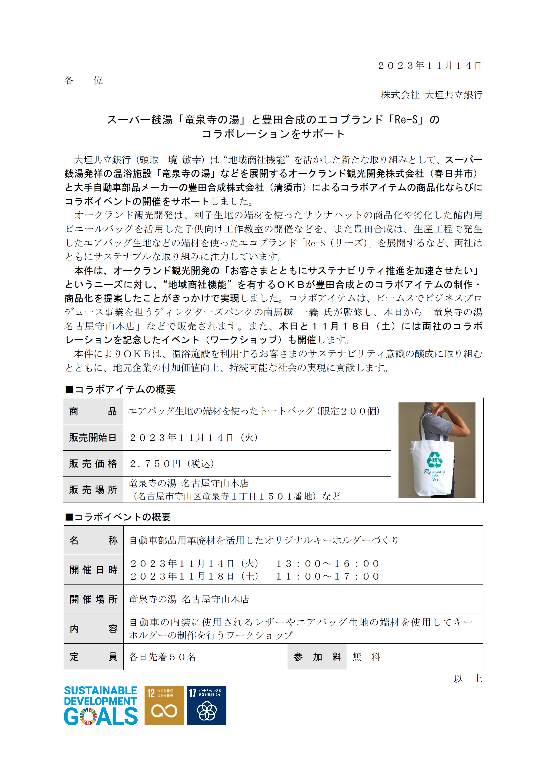 スーパー銭湯「竜泉寺の湯」と豊田合成のエコブランド「Re-S」のコラボレーションをサポート