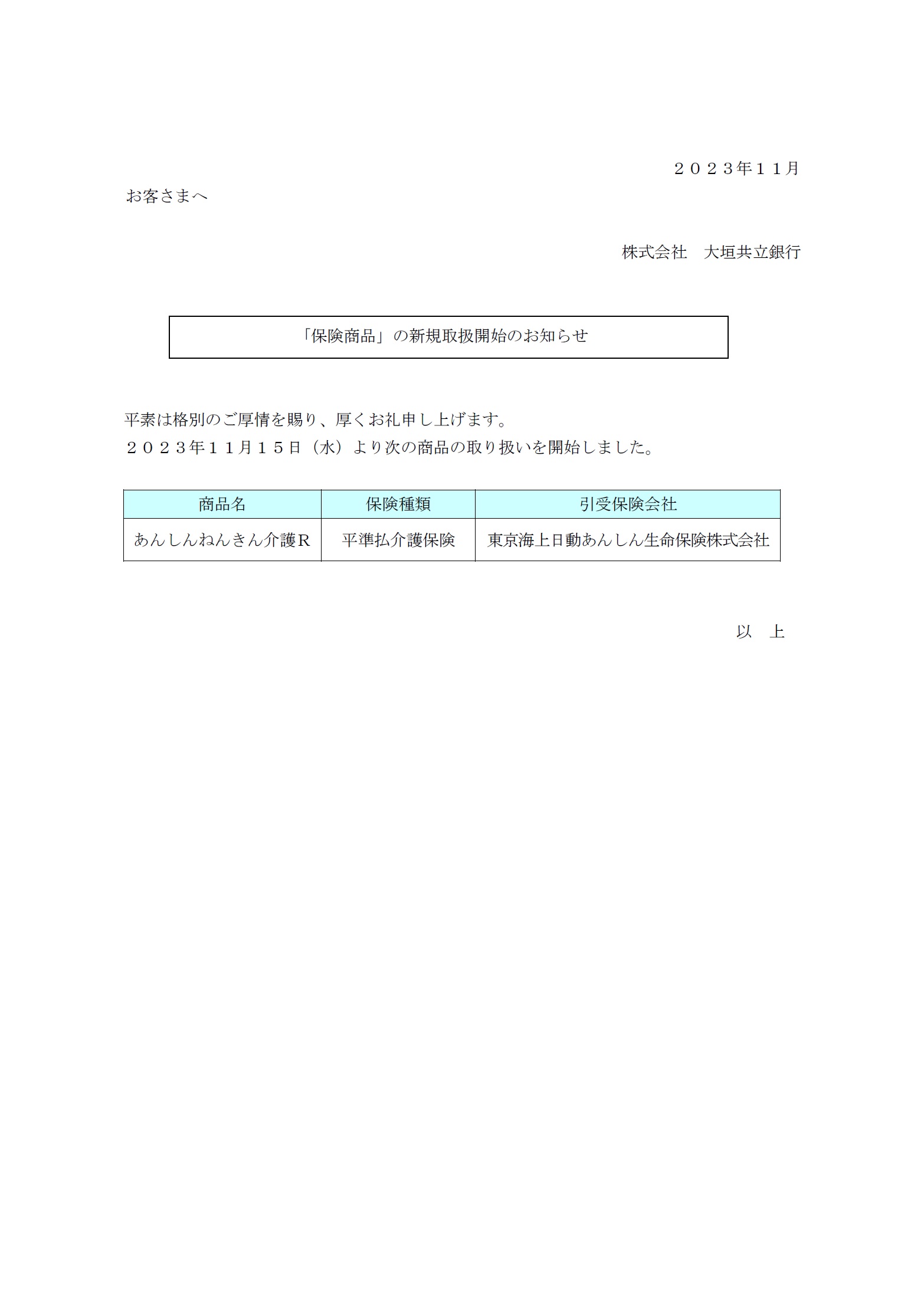 「保険商品」の新規取扱開始のお知らせ