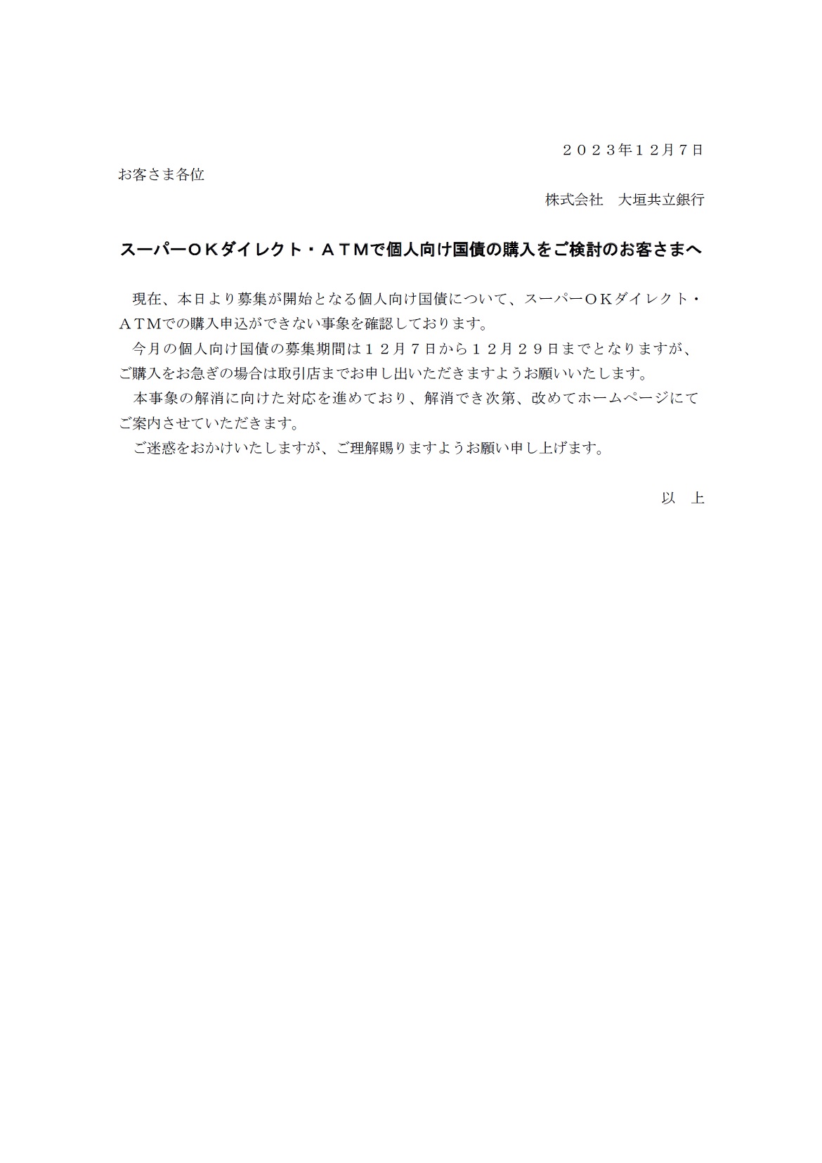 スーパーOKダイレクト・ATMで個人向け国債の購入をご検討のお客さまへ