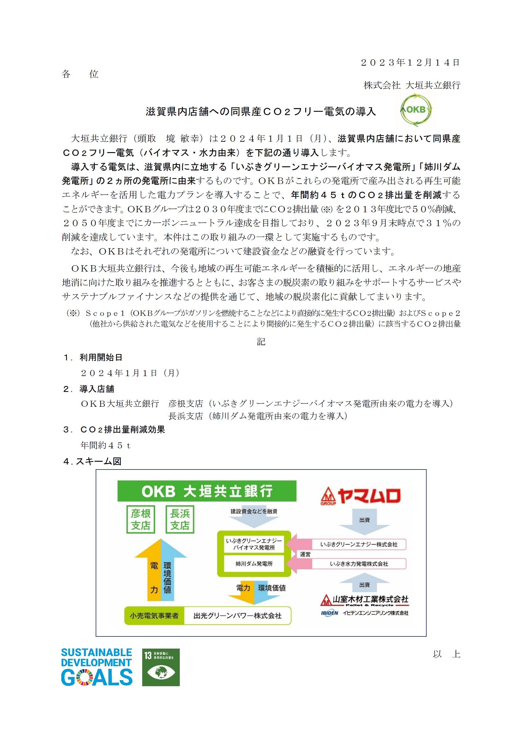 滋賀県内店舗への同県産CO2フリー電気の導入