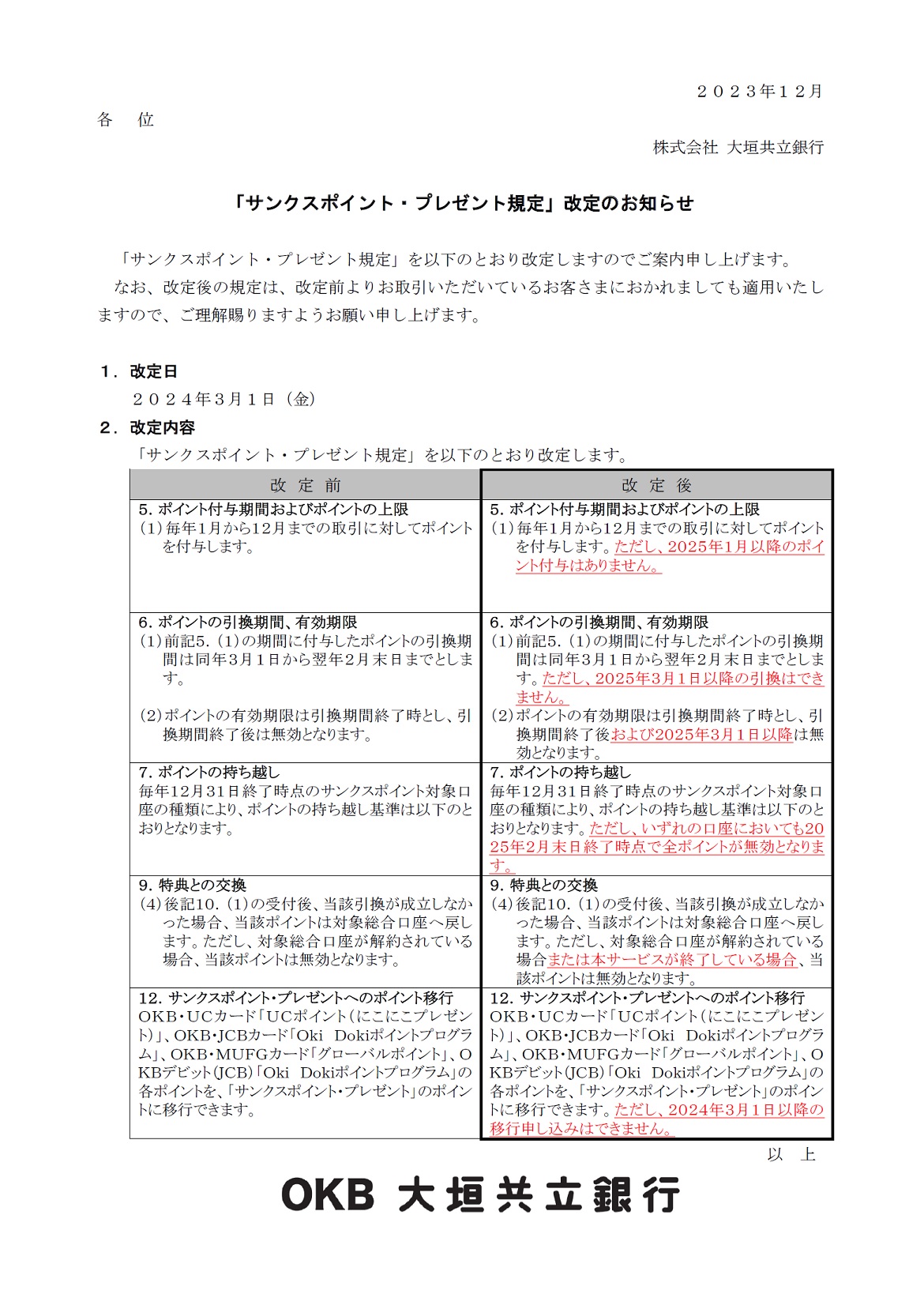 「サンクスポイント・プレゼント規定」改定のお知らせ