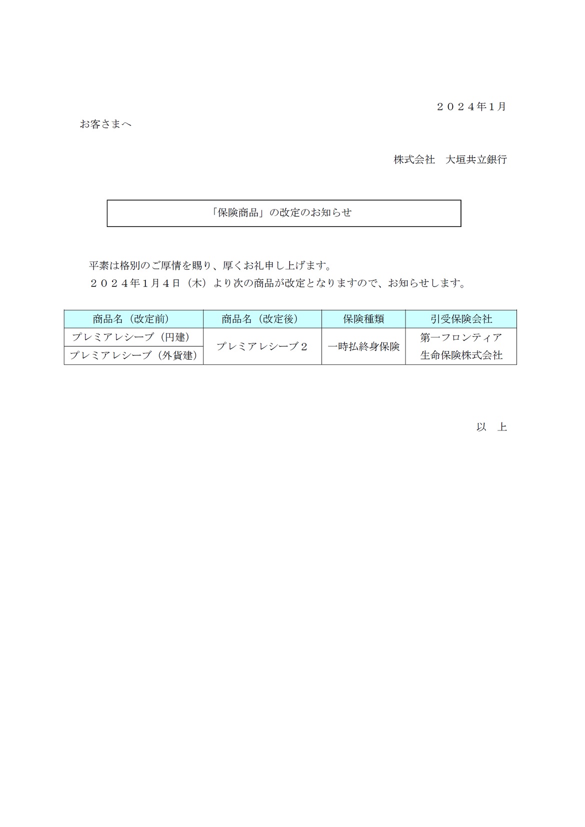 「保険商品」の改定のお知らせ