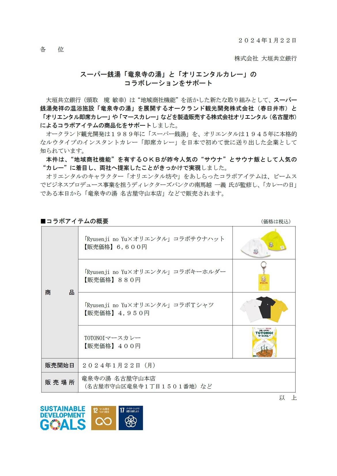 スーパー銭湯「竜泉寺の湯」と「オリエンタルカレー」のコラボレーションをサポート
