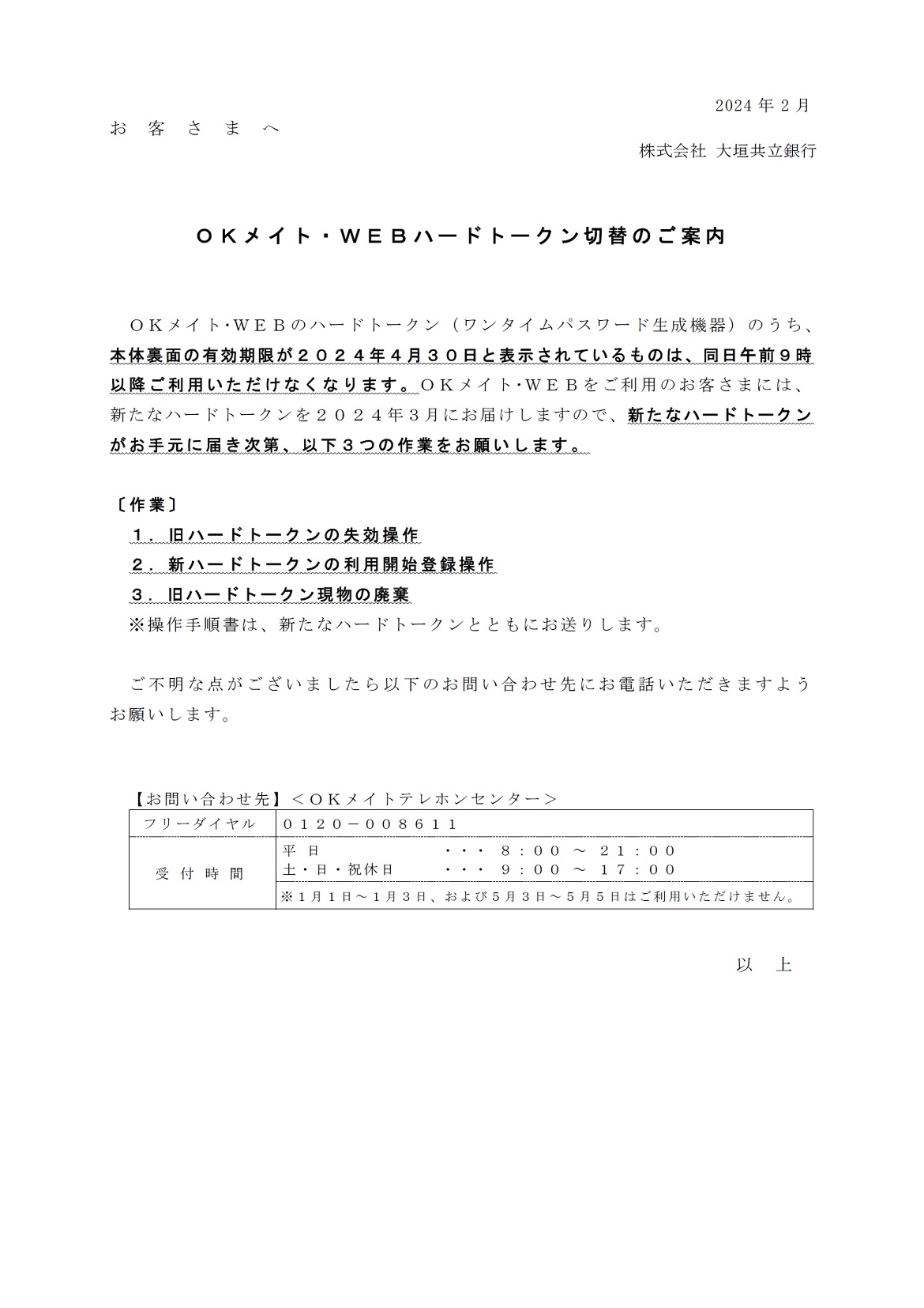 OKメイト・WEBハードトークン切替のご案内