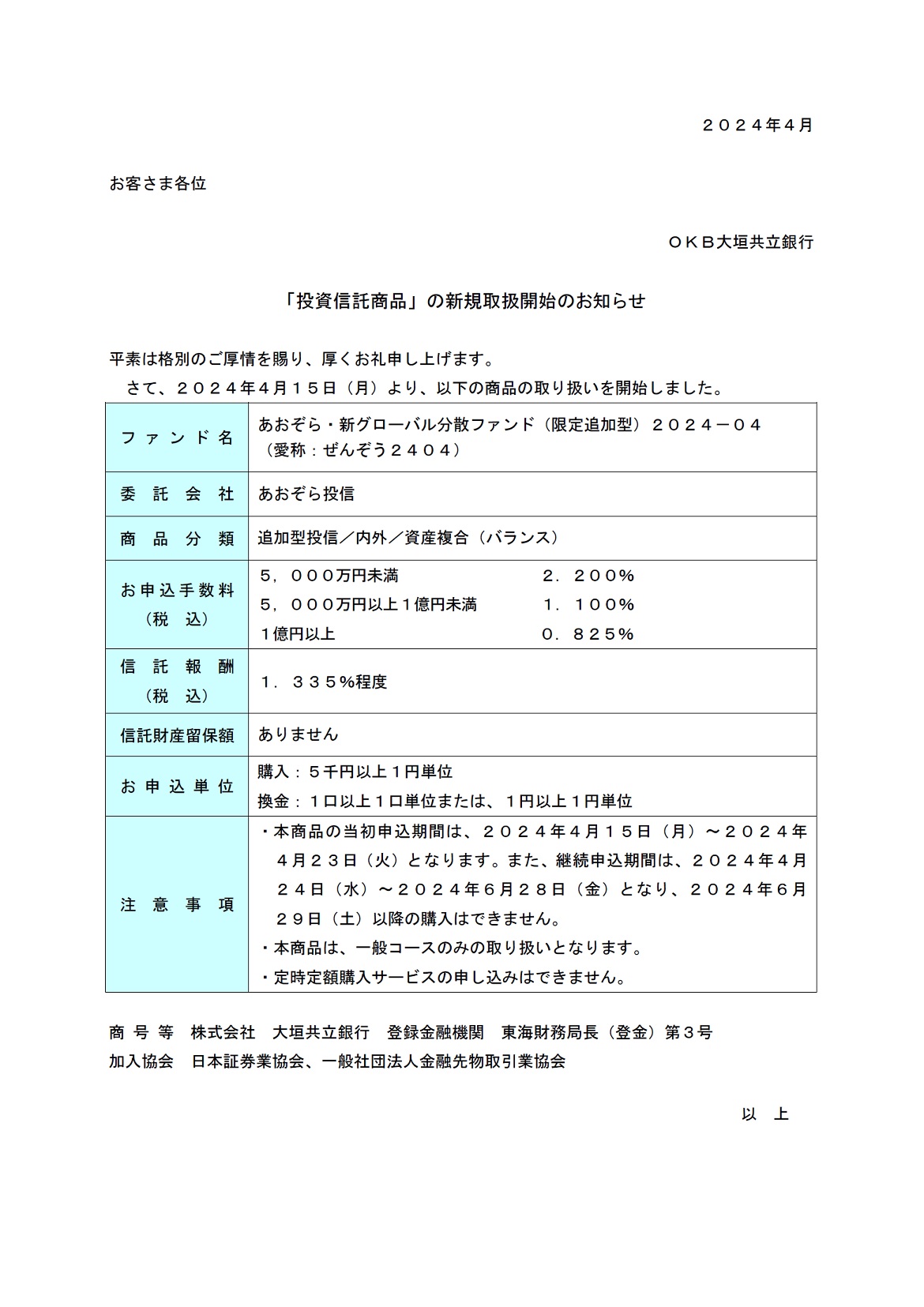 あおぞら・新グローバル分散ファンド(限定追加型)2024-04