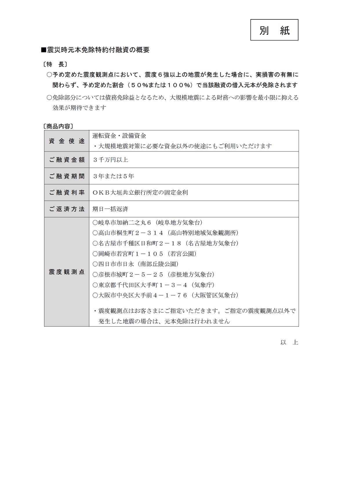 「震災時元本免除特約付融資」のご利用