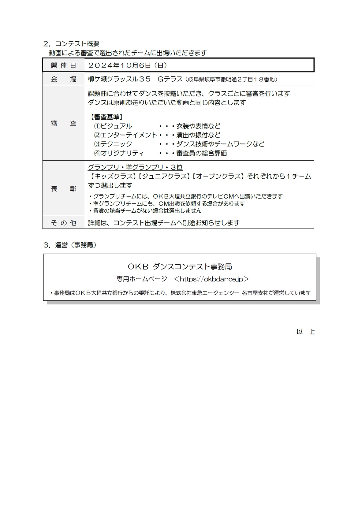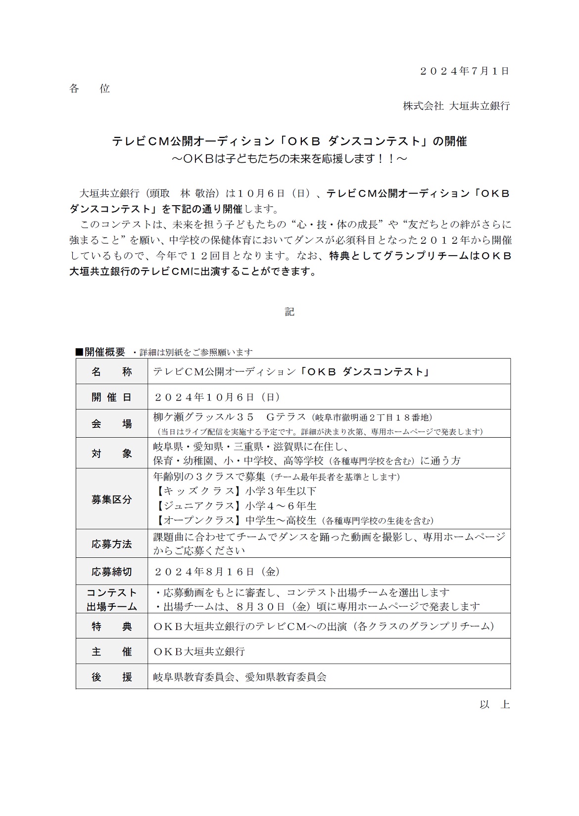 テレビCM公開オーディション「OKB ダンスコンテスト」の開催