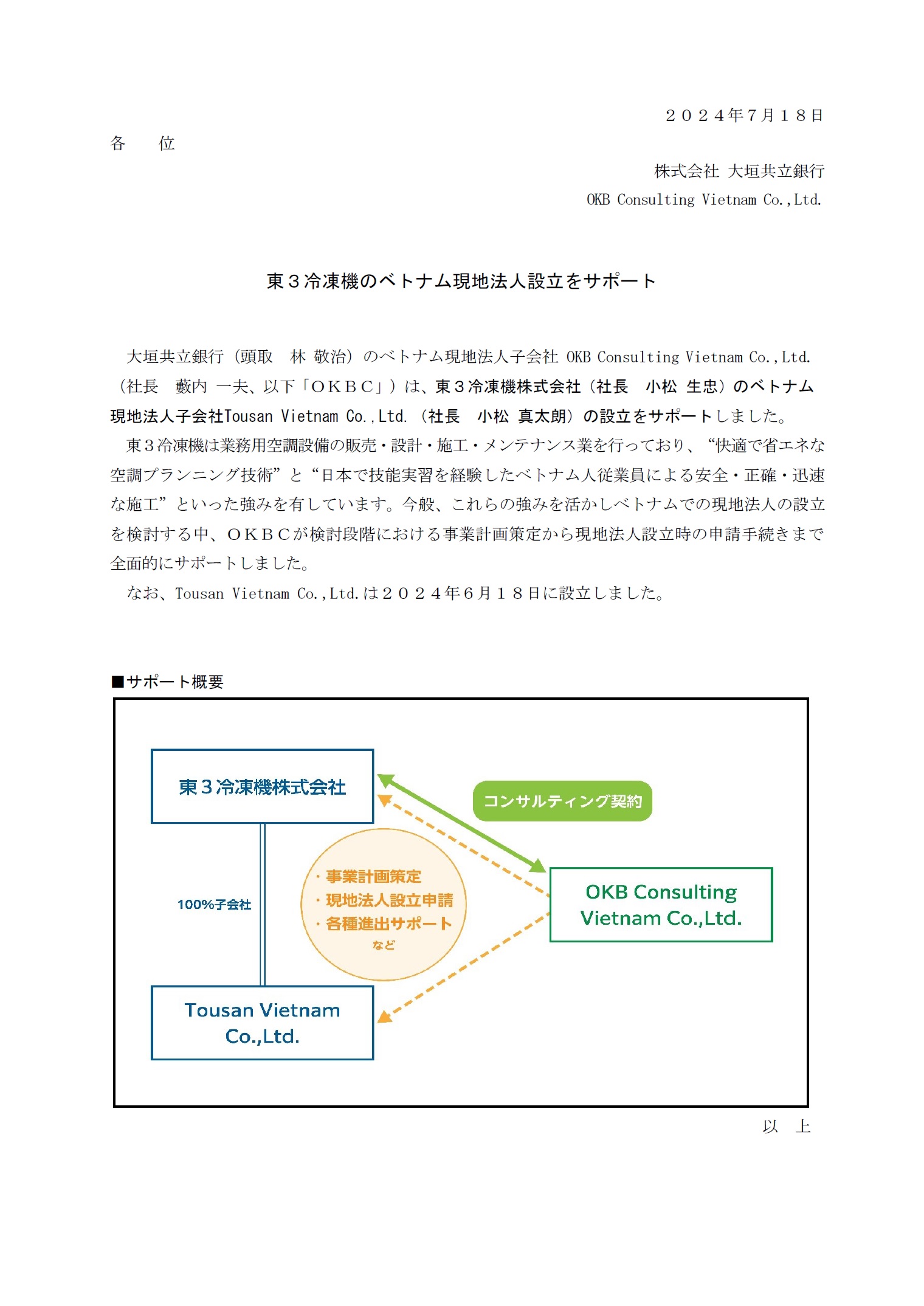 東3冷凍機のベトナム現地法人設立をサポート
