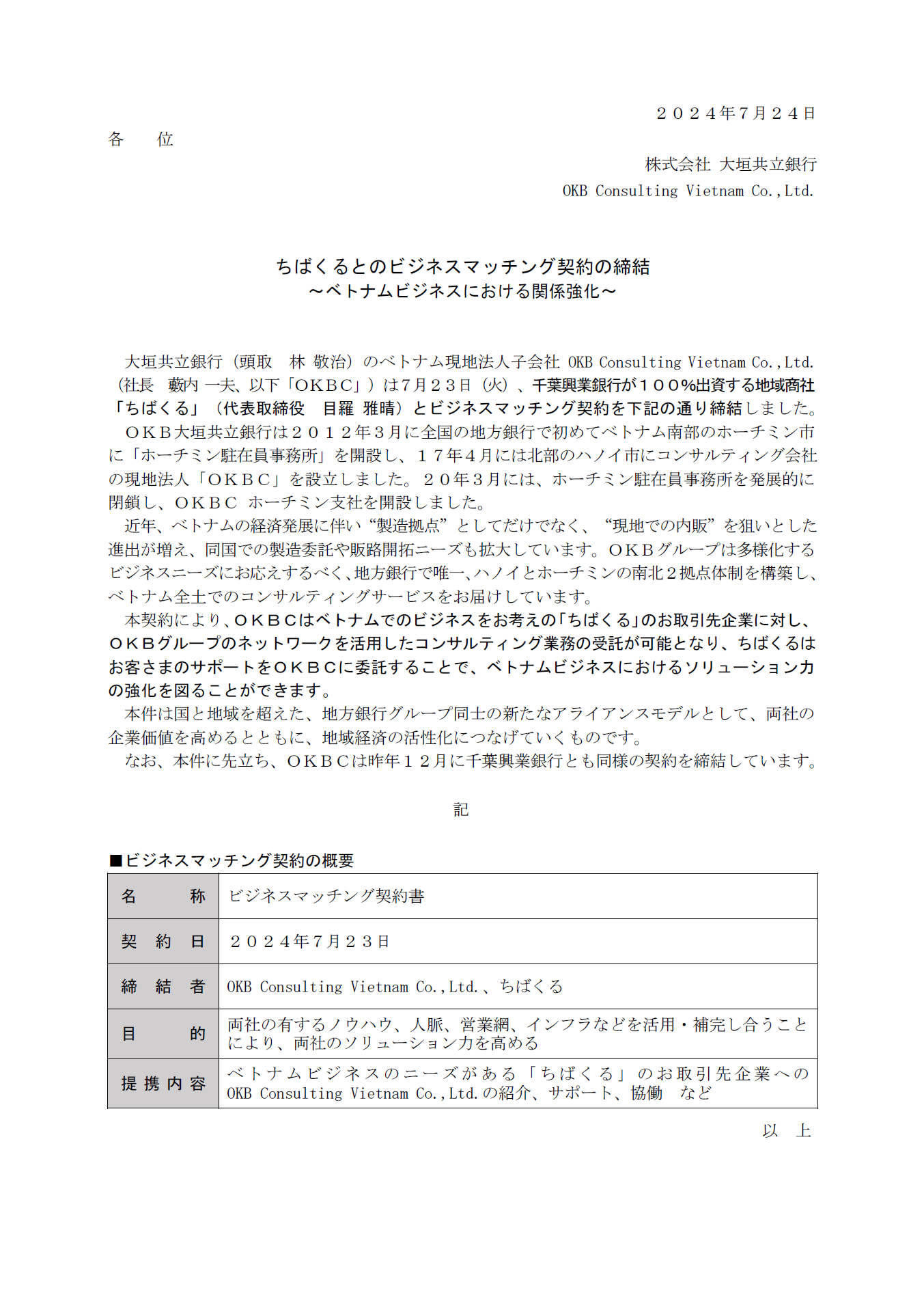 ちばくるとのビジネスマッチング契約の締結