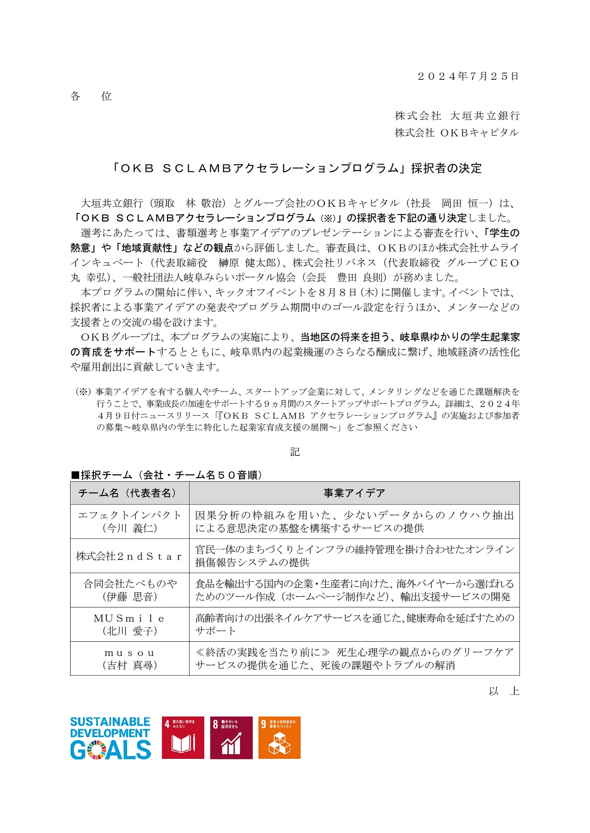「OKB SCLAMBアクセラレーションプログラム」採択者の決定