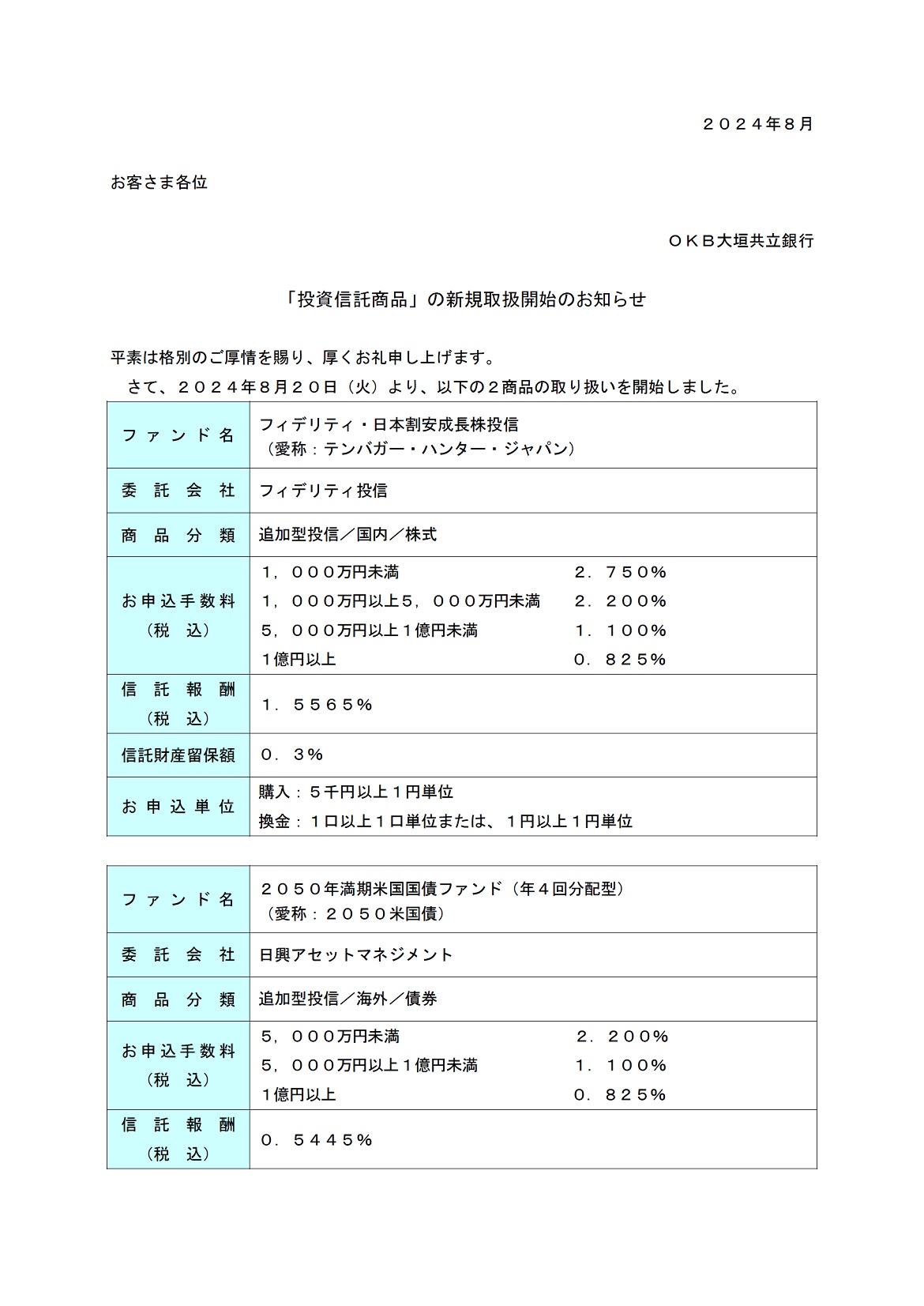 「投資信託商品」の新規取扱開始のお知らせ