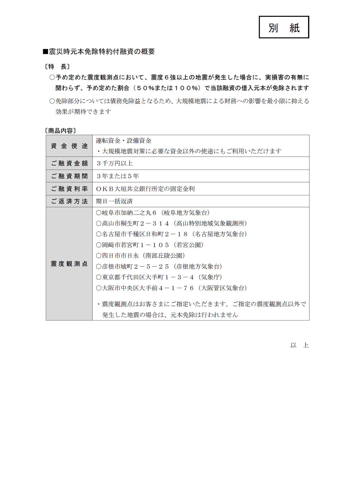 「震災時元本免除特約付融資」のご利用