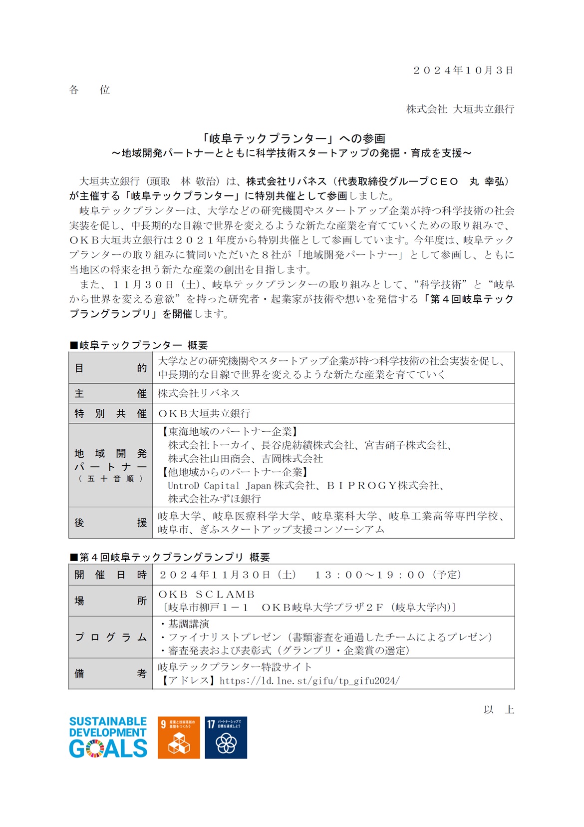 「岐阜テックプランター」への参画