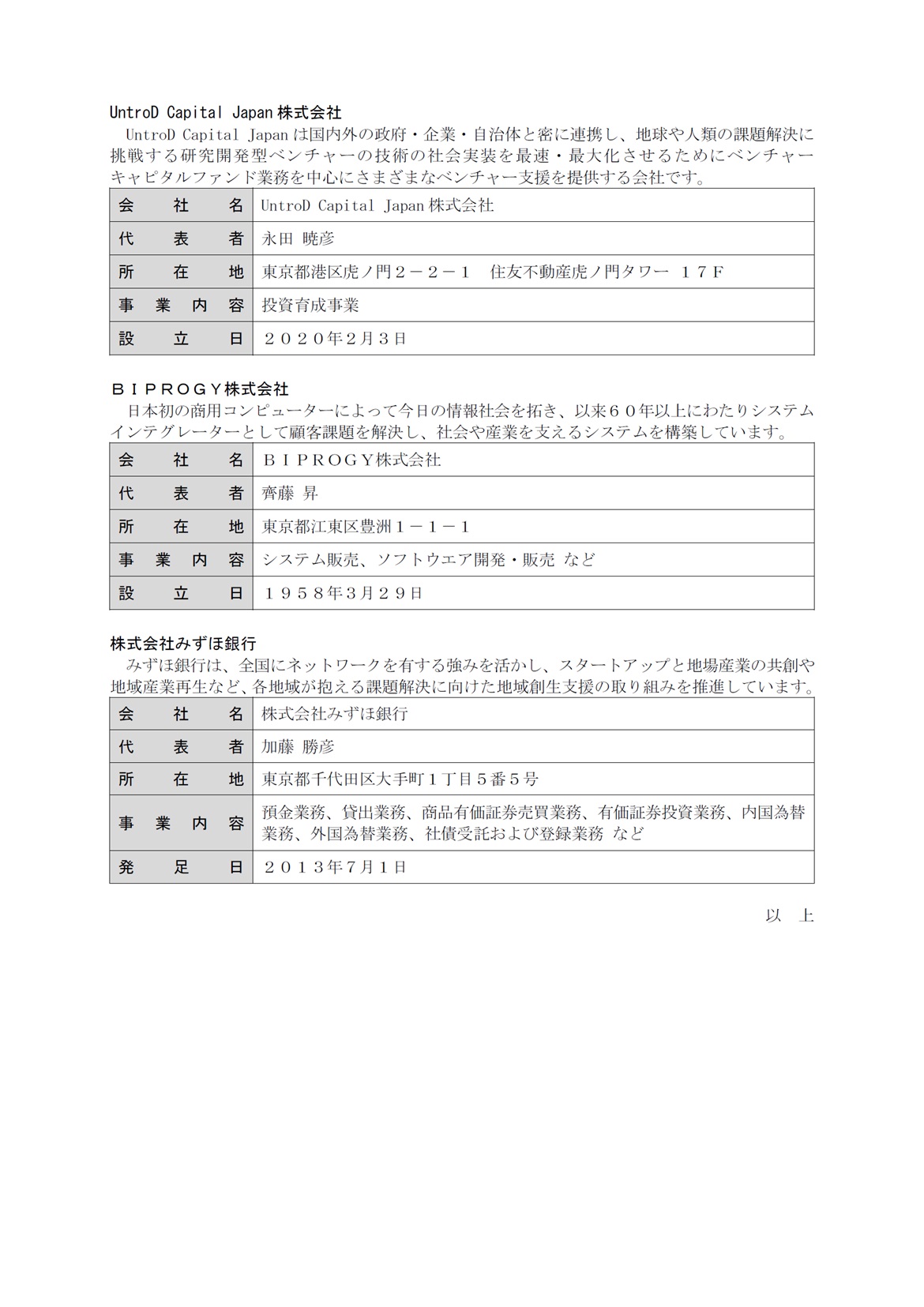重要なお知らせ