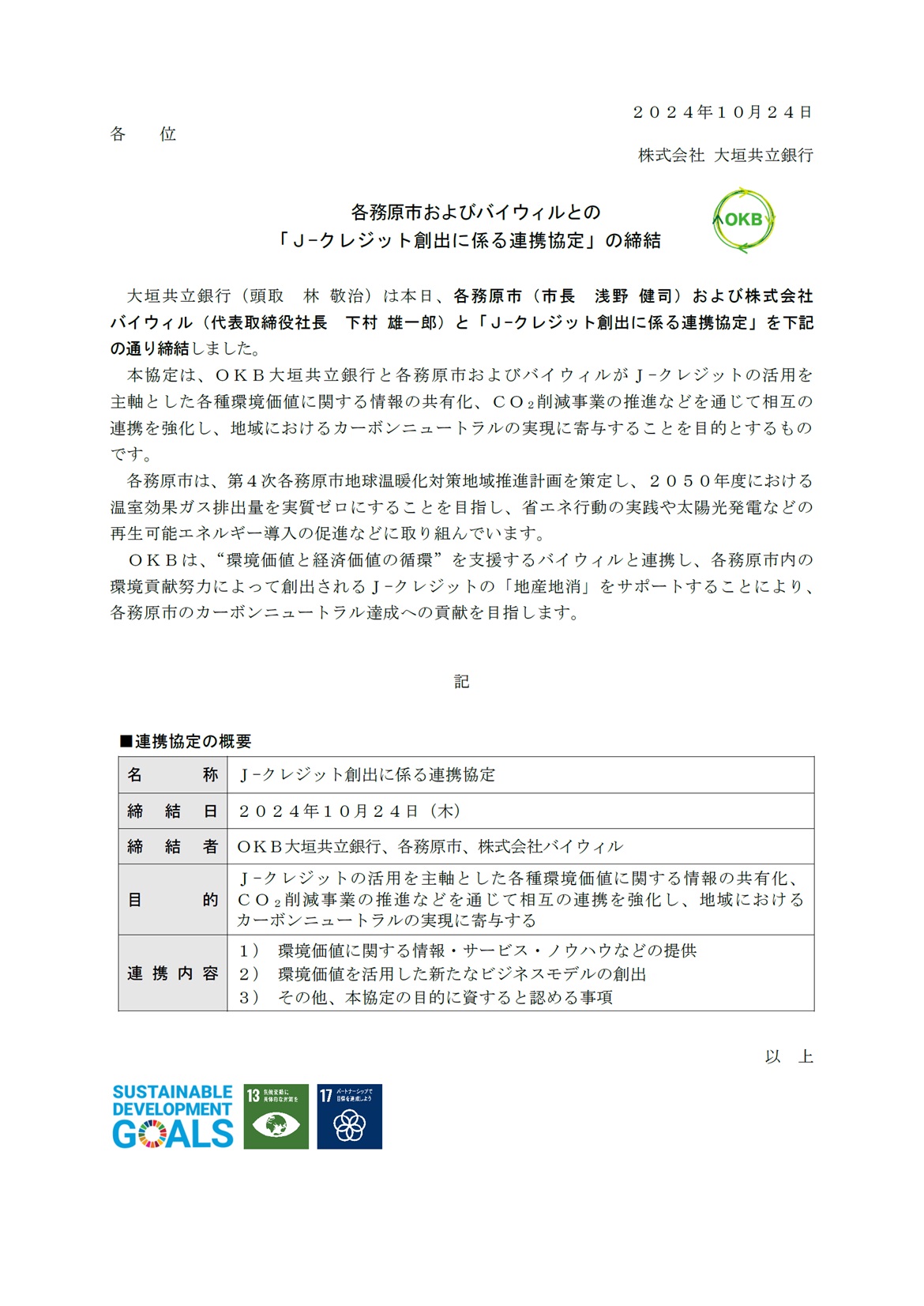 各務原市およびバイウィルとの「J-クレジット創出に係る連携協定」の締結