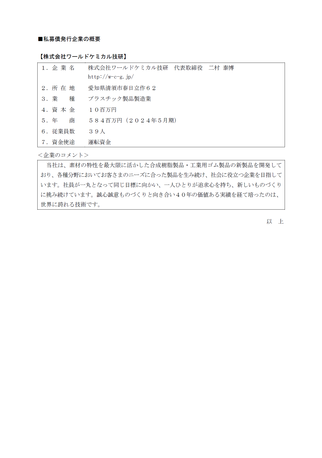 株式会社ワールドケミカル技研