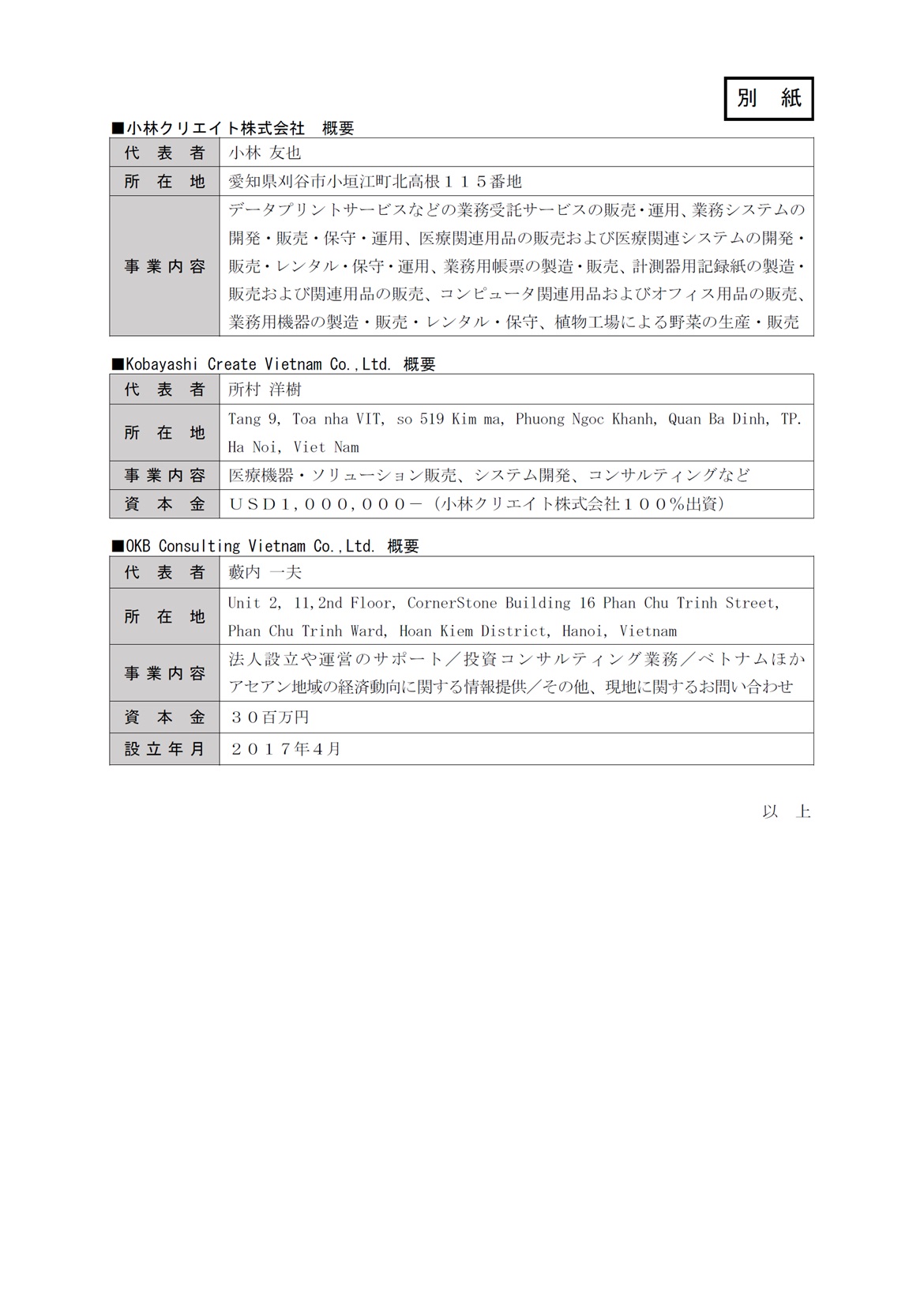小林クリエイトのベトナム現地法人設立をサポート