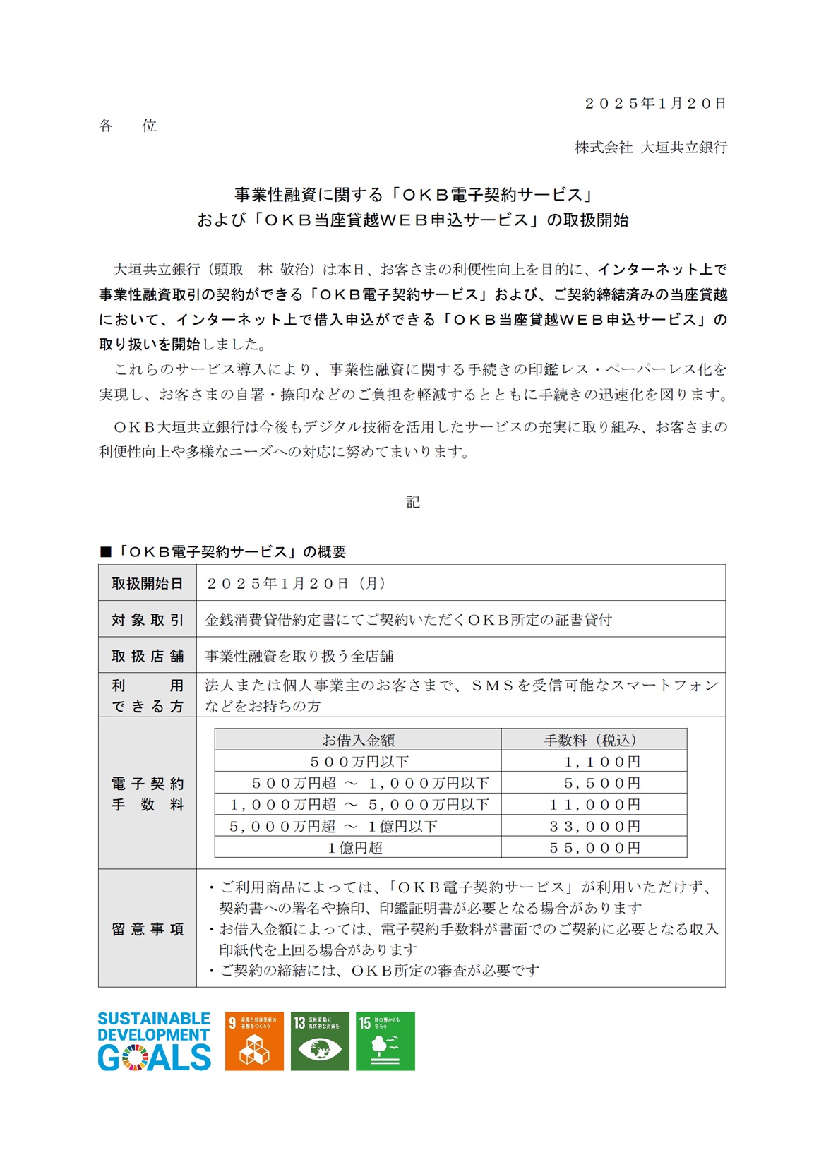 事業性融資に関する「OKB電子契約サービス」および「OKB当座貸越WEB申込サービス」の取扱開始