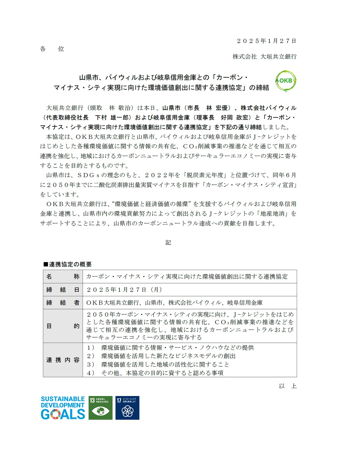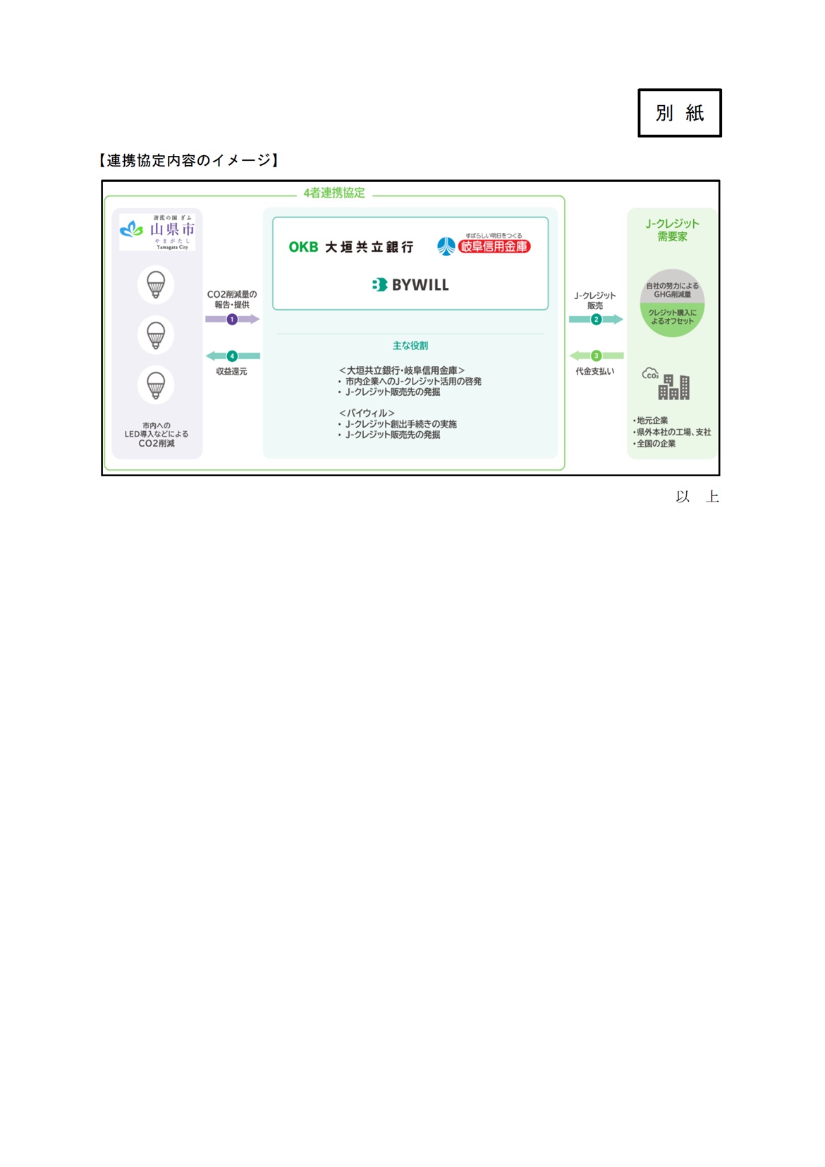 山県市、バイウィルおよび岐阜信用金庫との「カーボン・マイナス・シティ実現に向けた環境価値創出に関する連携協定」の締結