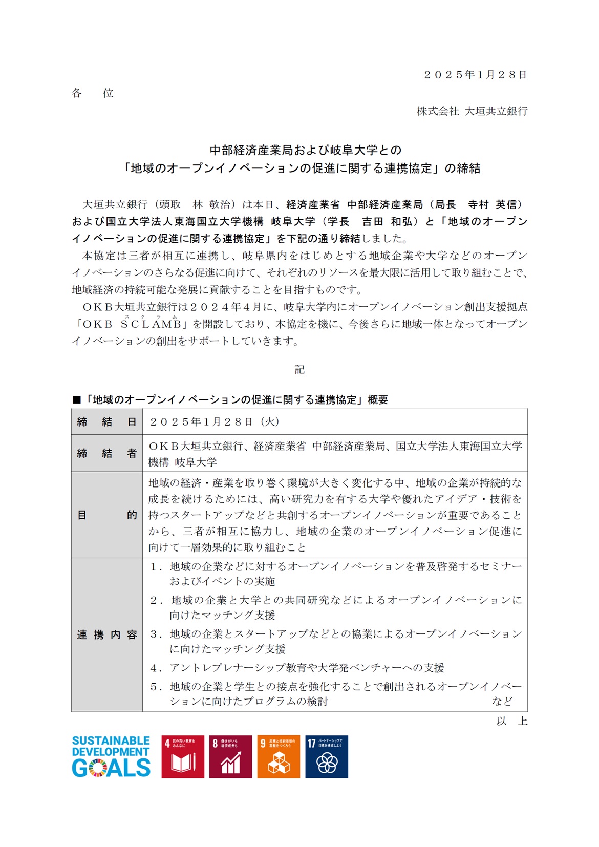 中部経済産業局および岐阜大学との「地域のオープンイノベーションの促進に関する連携協定」の締結