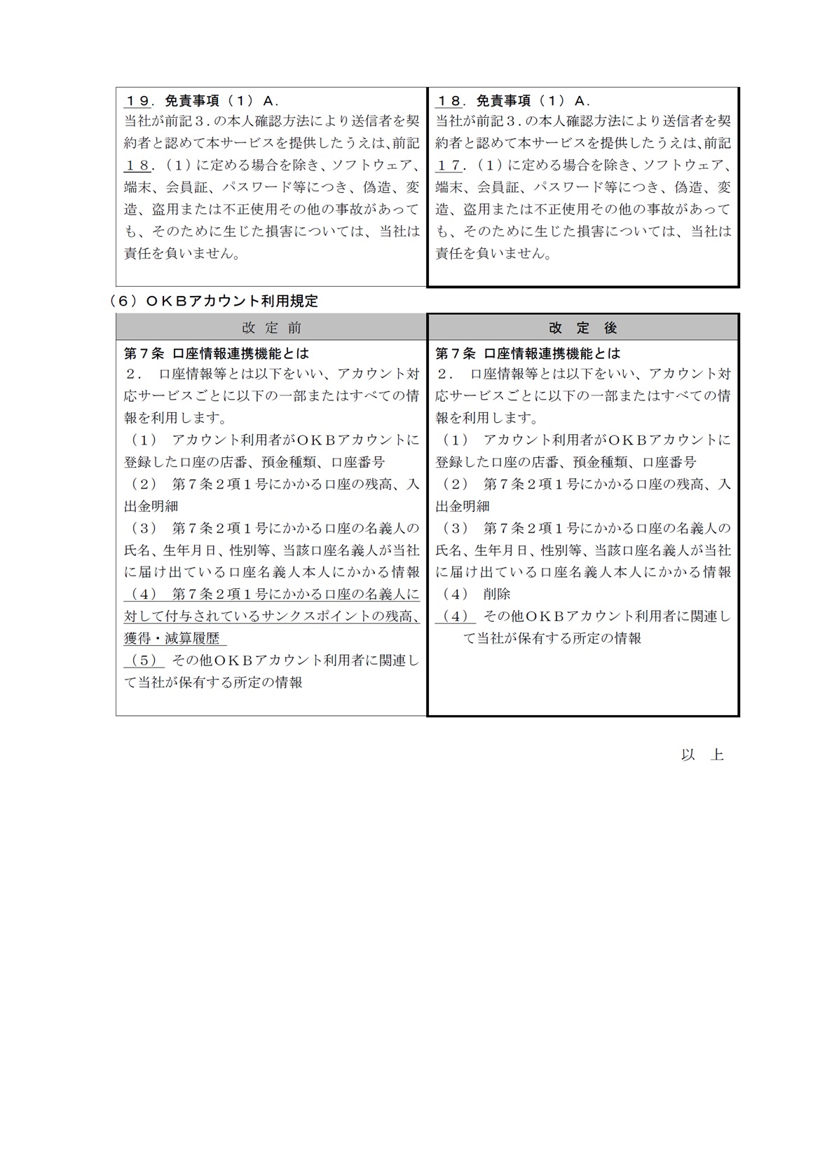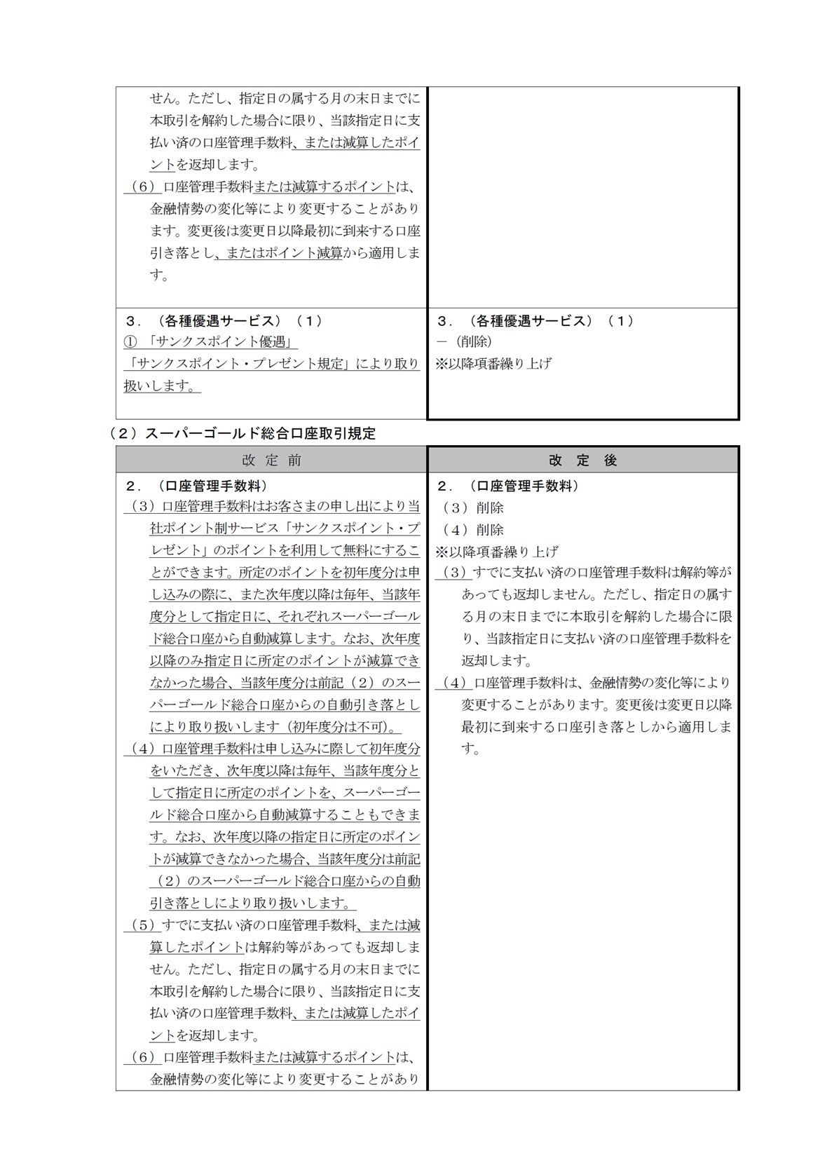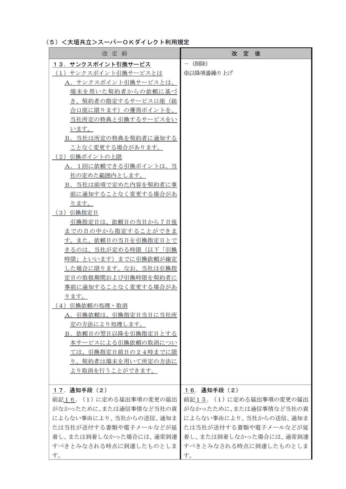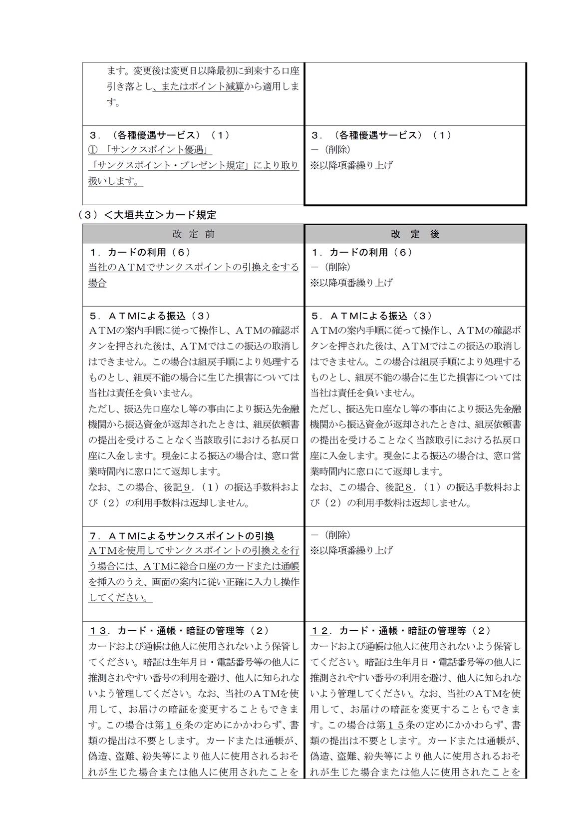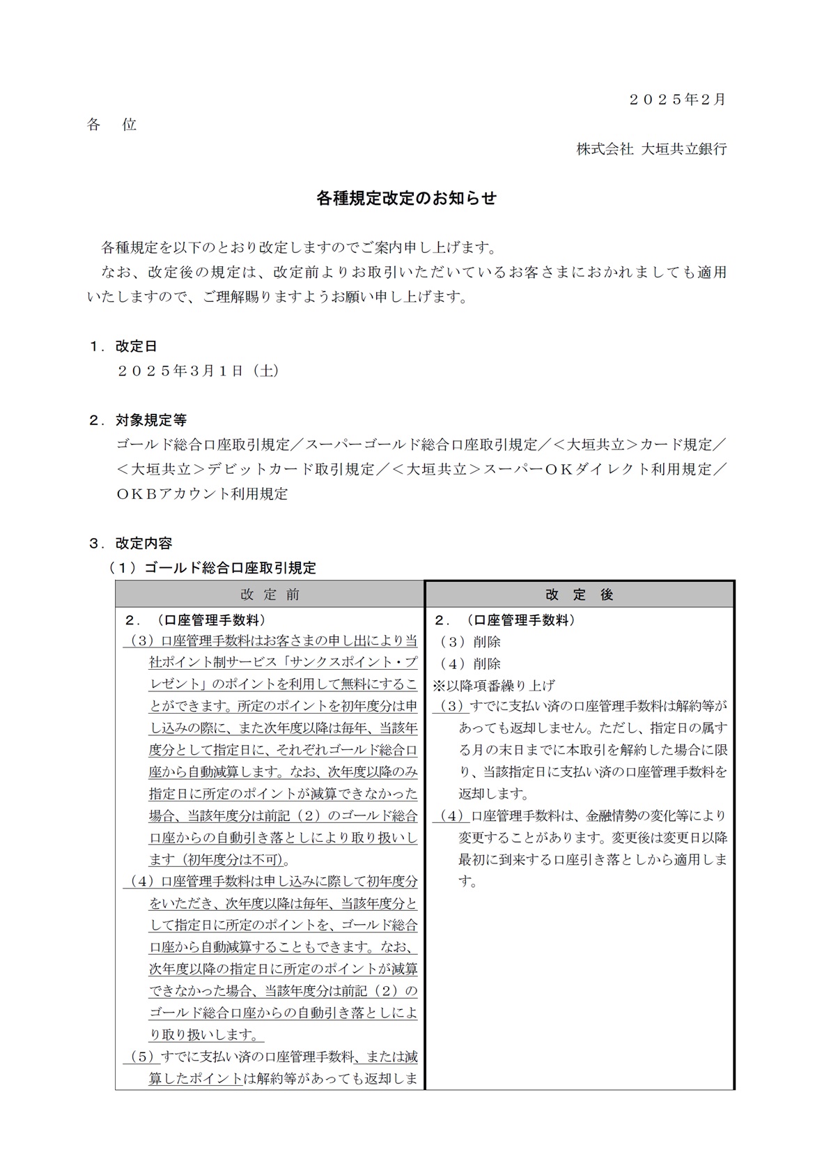 各種規定改定のお知らせ