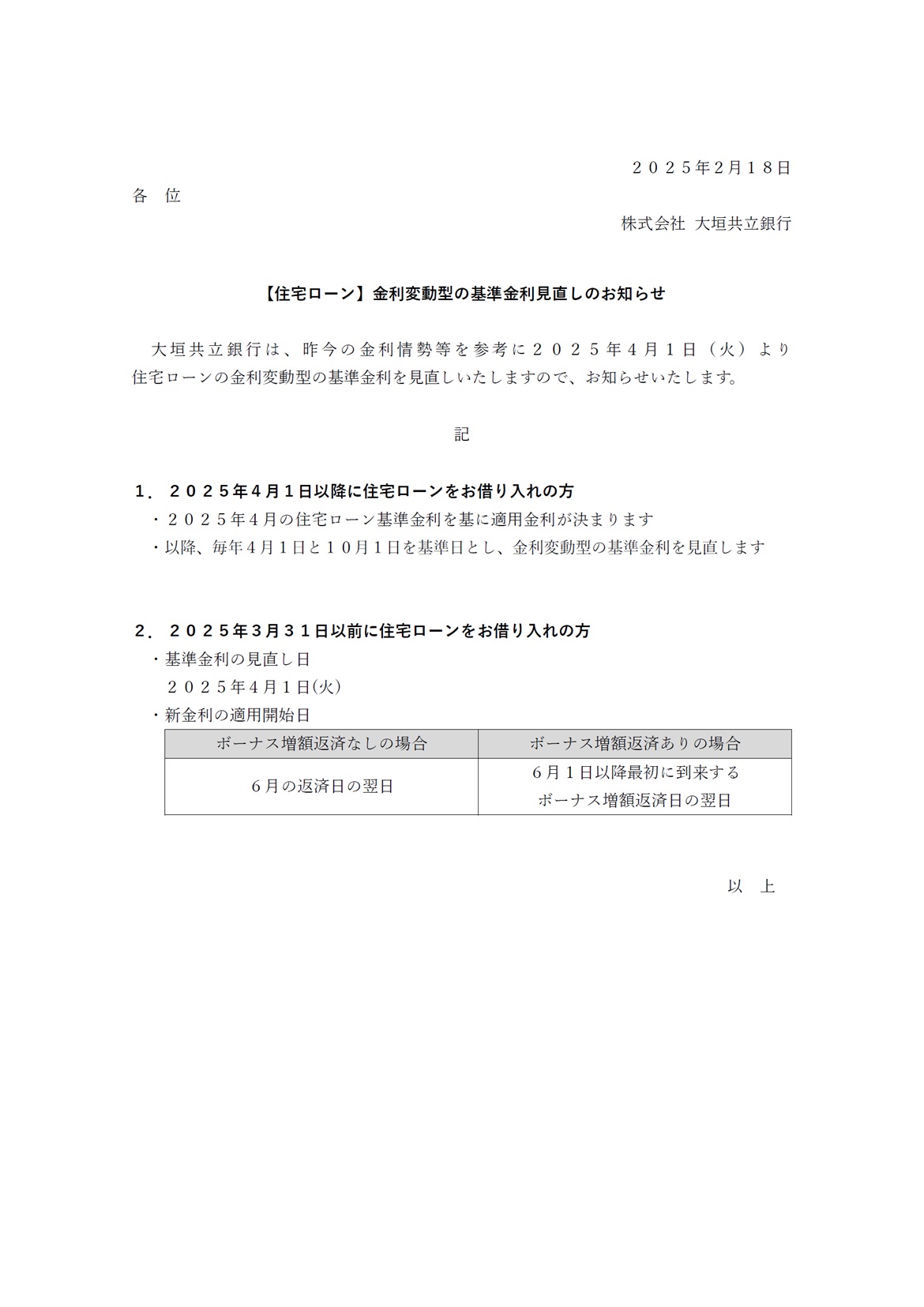 【住宅ローン】金利変動型の基準金利見直しのお知らせ