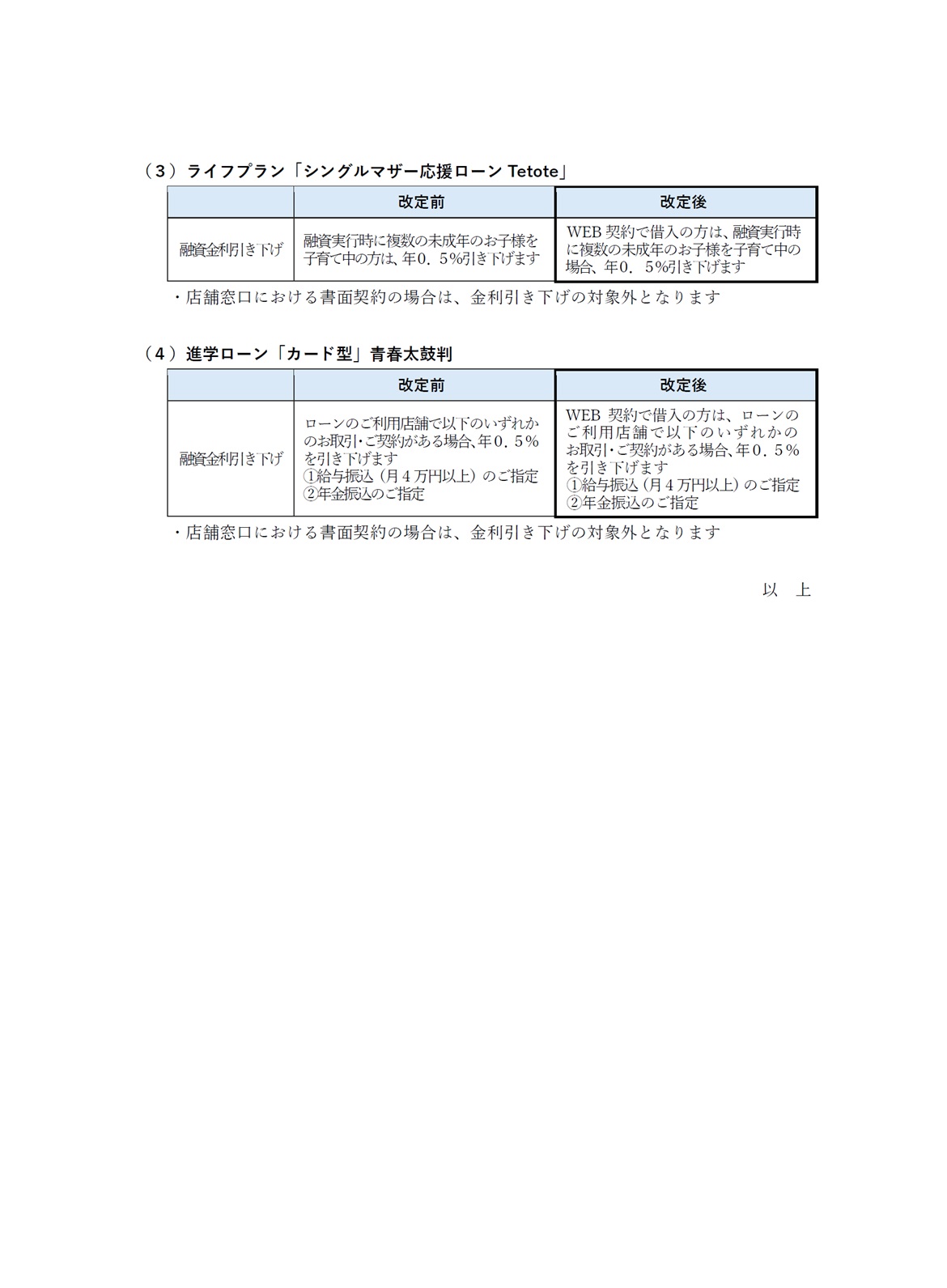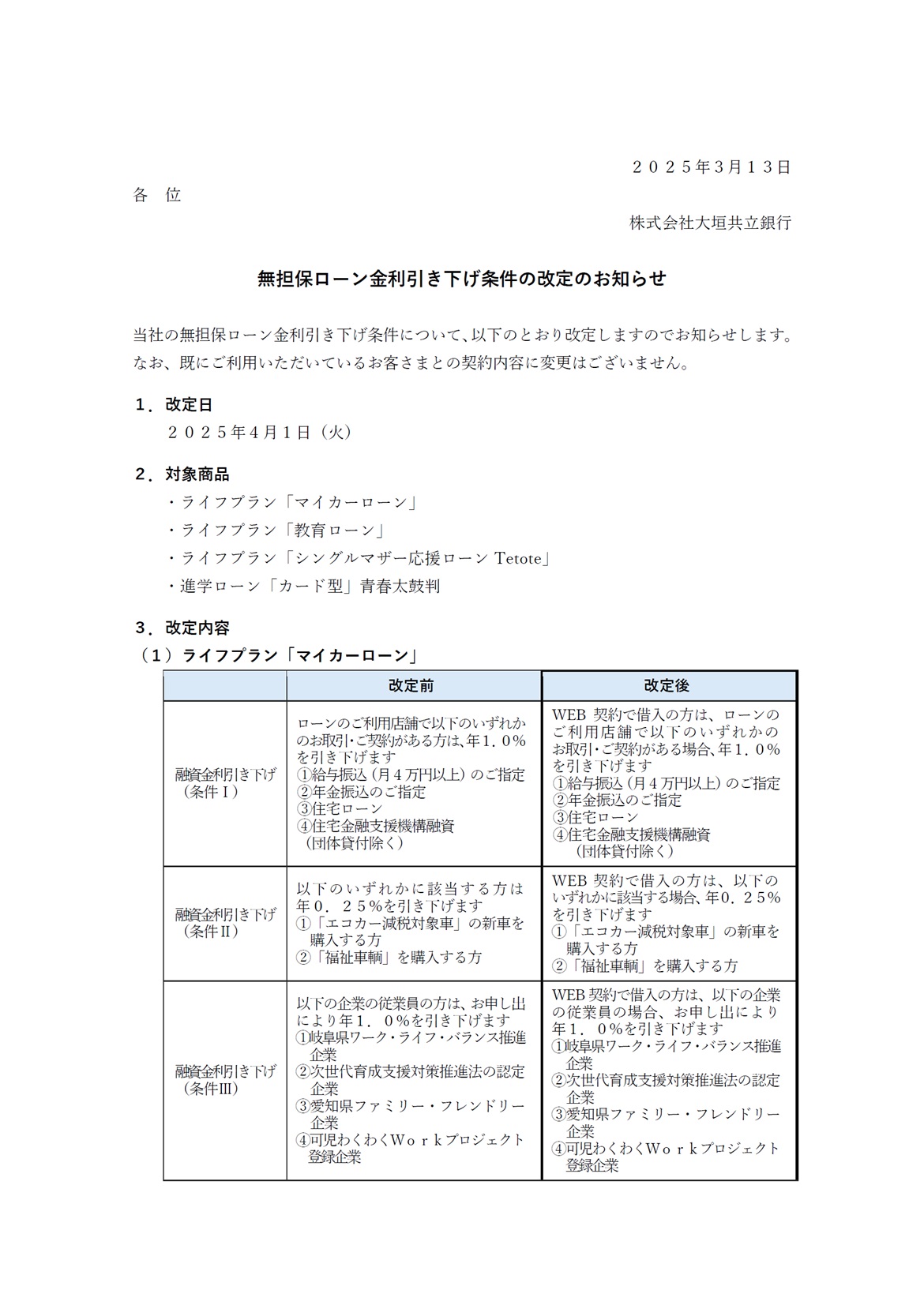 無担保ローン金利引き下げ条件の改定のお知らせ