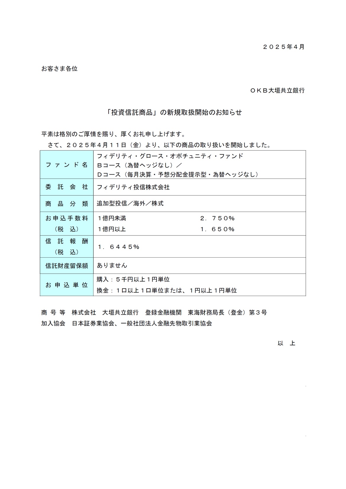 フィデリティ・グロース・オポチュニティ・ファンドBコース(為替ヘッジなし)/Dコース(毎月決算・予想分配金提示型・為替ヘッジなし)