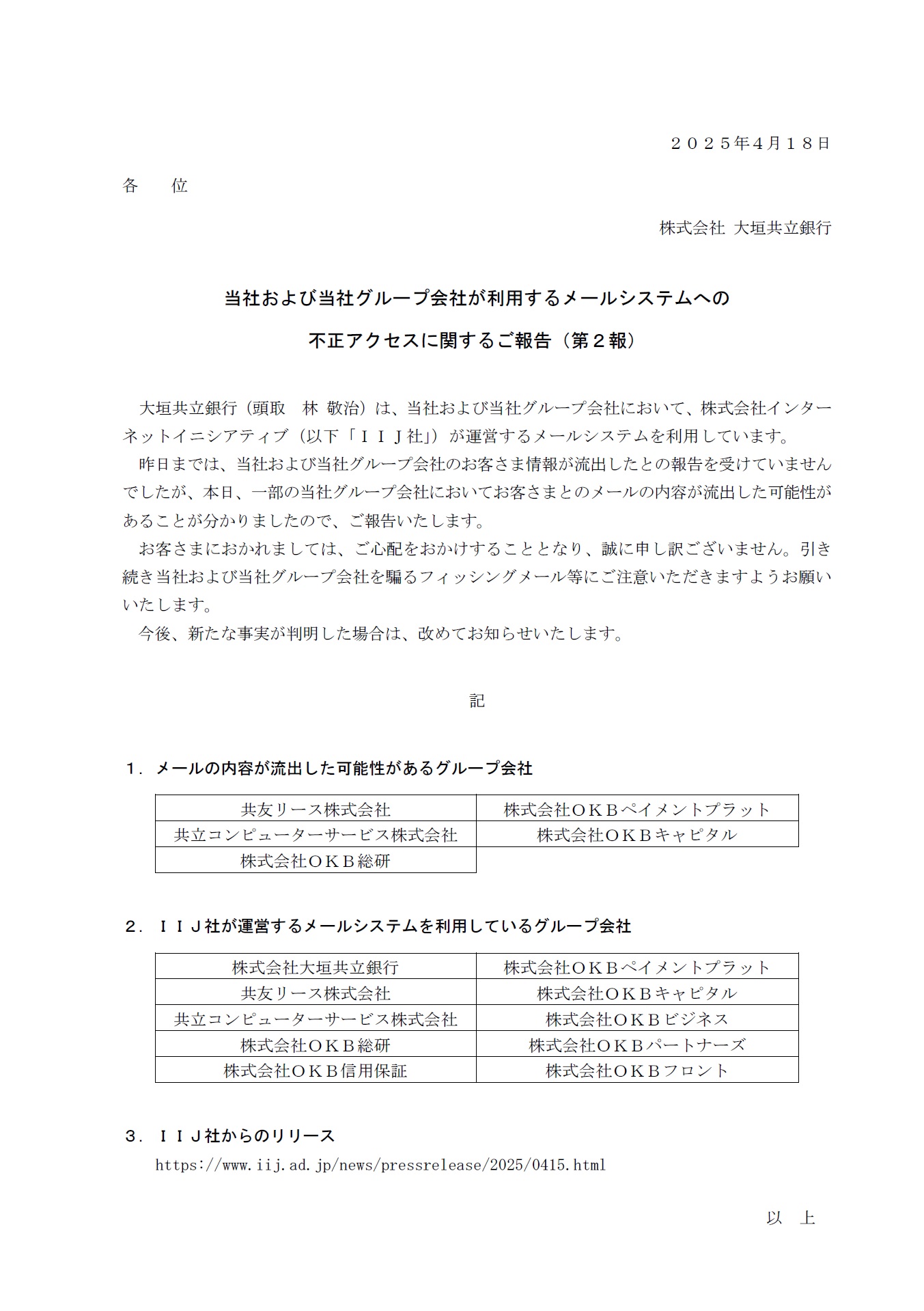 当社および当社グループ会社が利用するメールシステムへの不正アクセスに関するご報告(第2報)