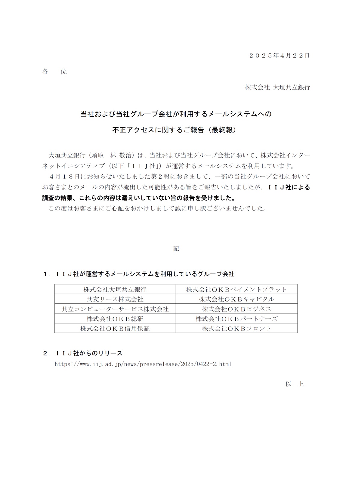 当社および当社グループ会社が利用するメールシステムへの不正アクセスに関するご報告(最終報)