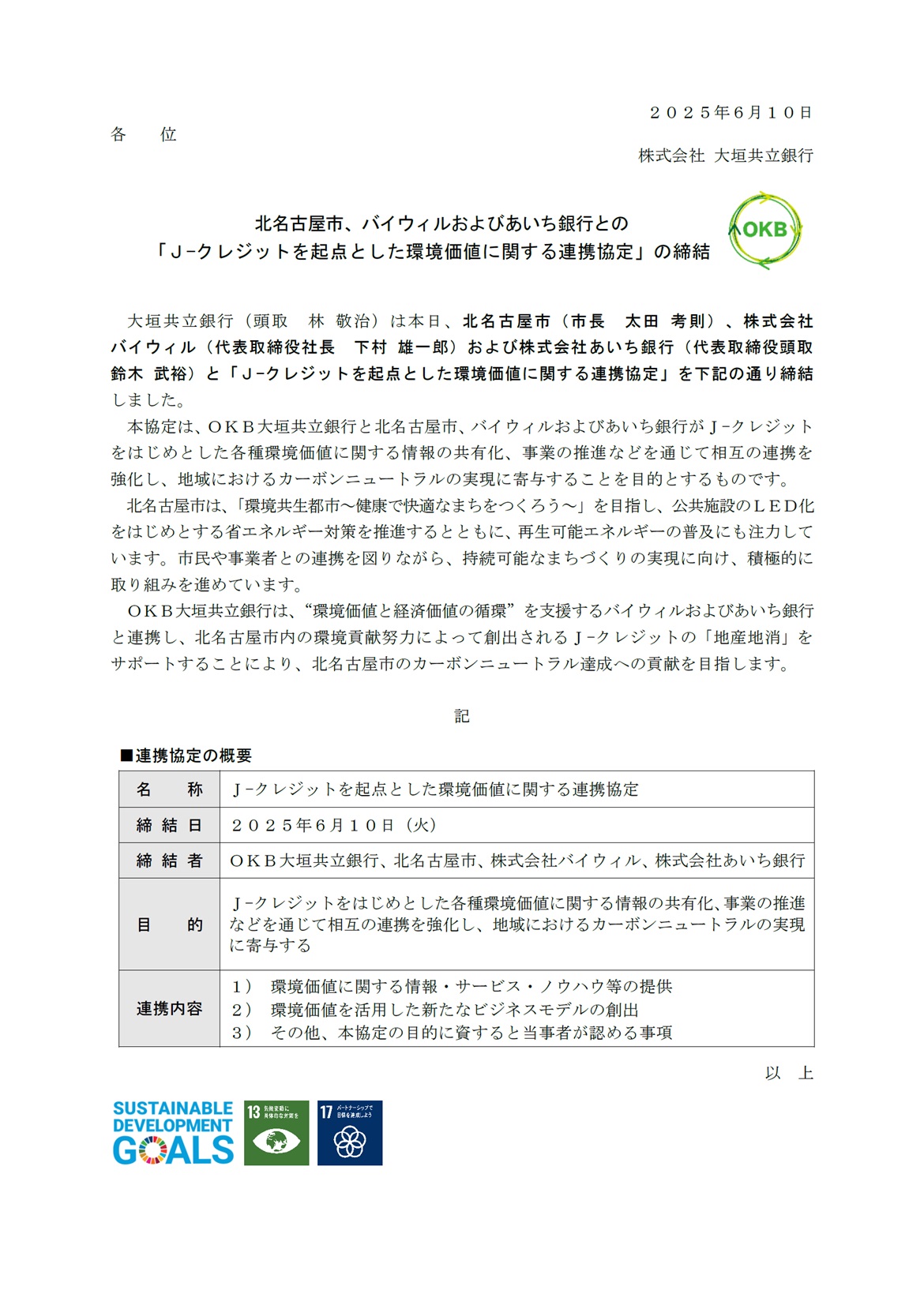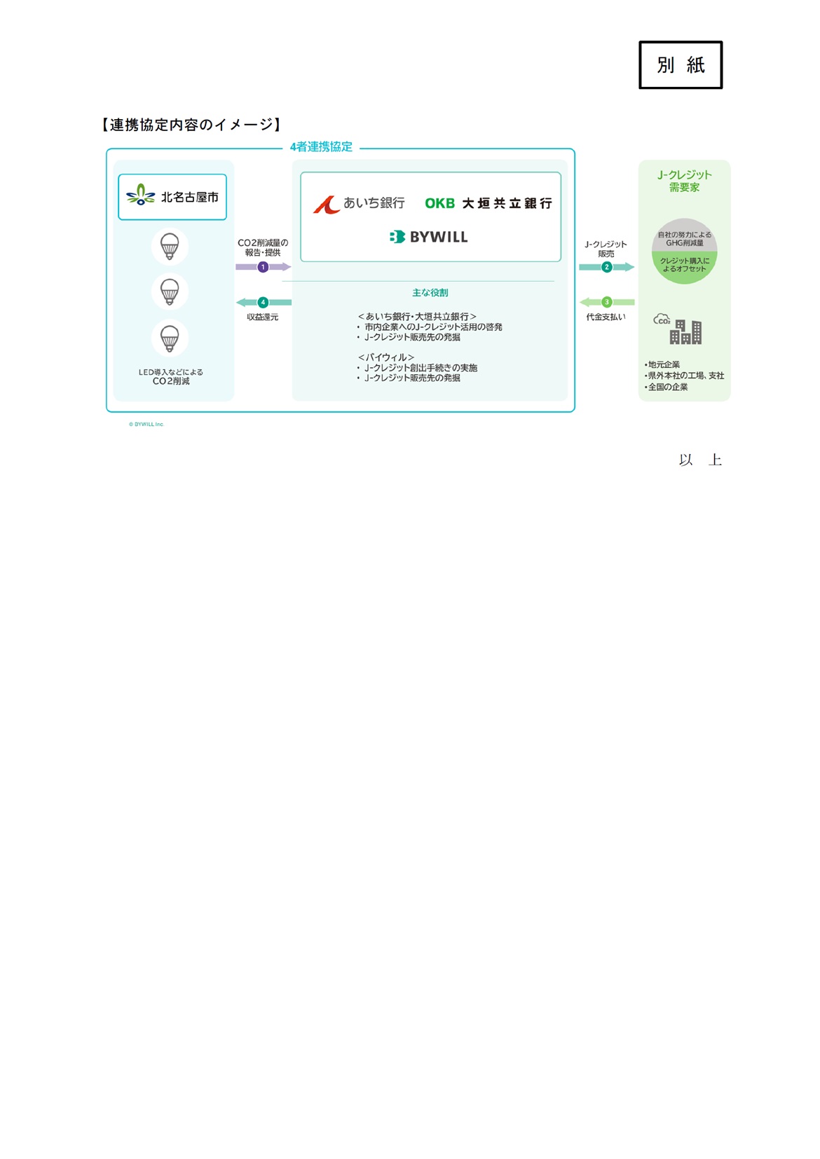 北名古屋市、バイウィルおよびあいち銀行との「J-クレジットを起点とした環境価値に関する連携協定」の締結