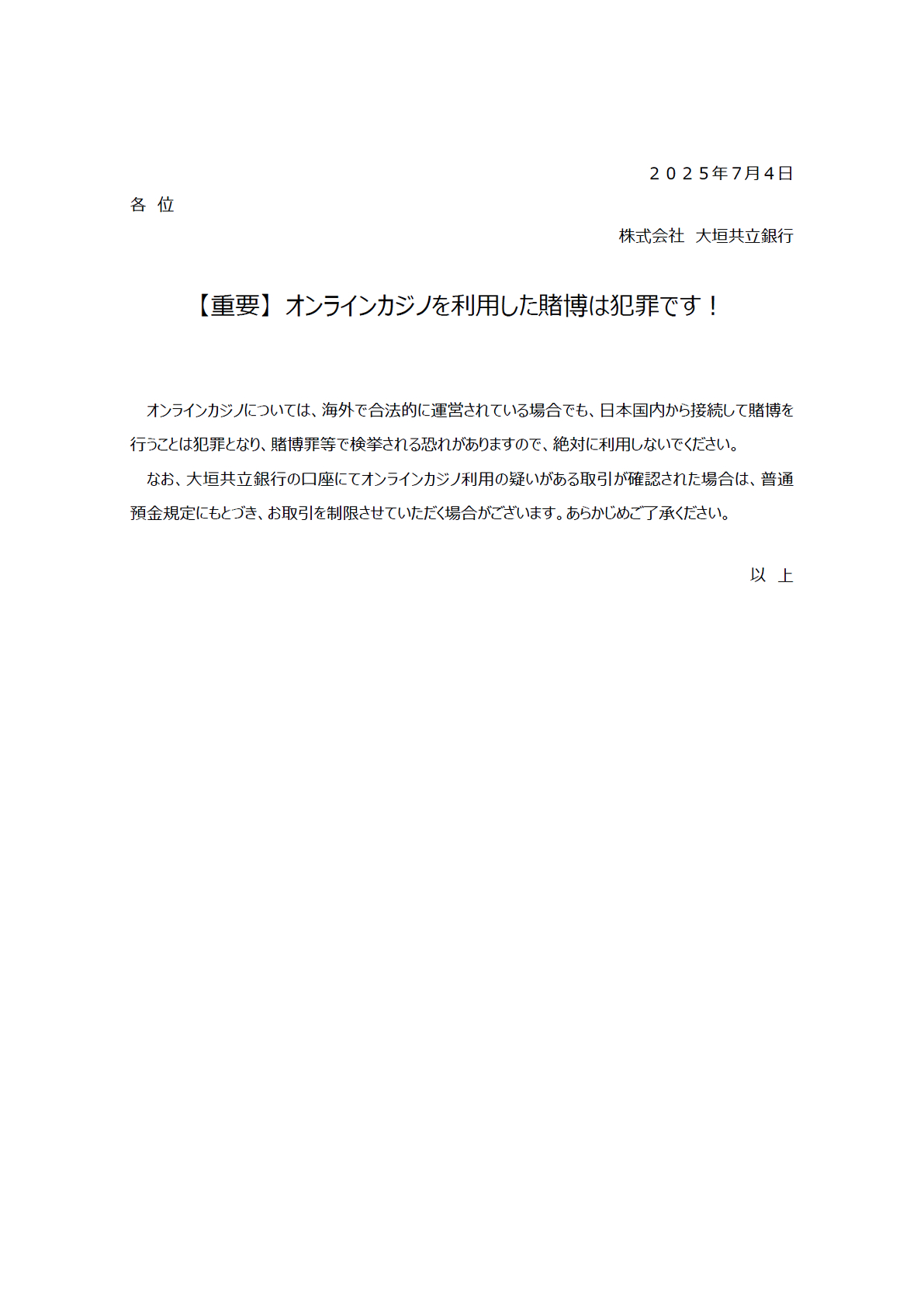 【重要】オンラインカジノを利用した賭博は犯罪です!