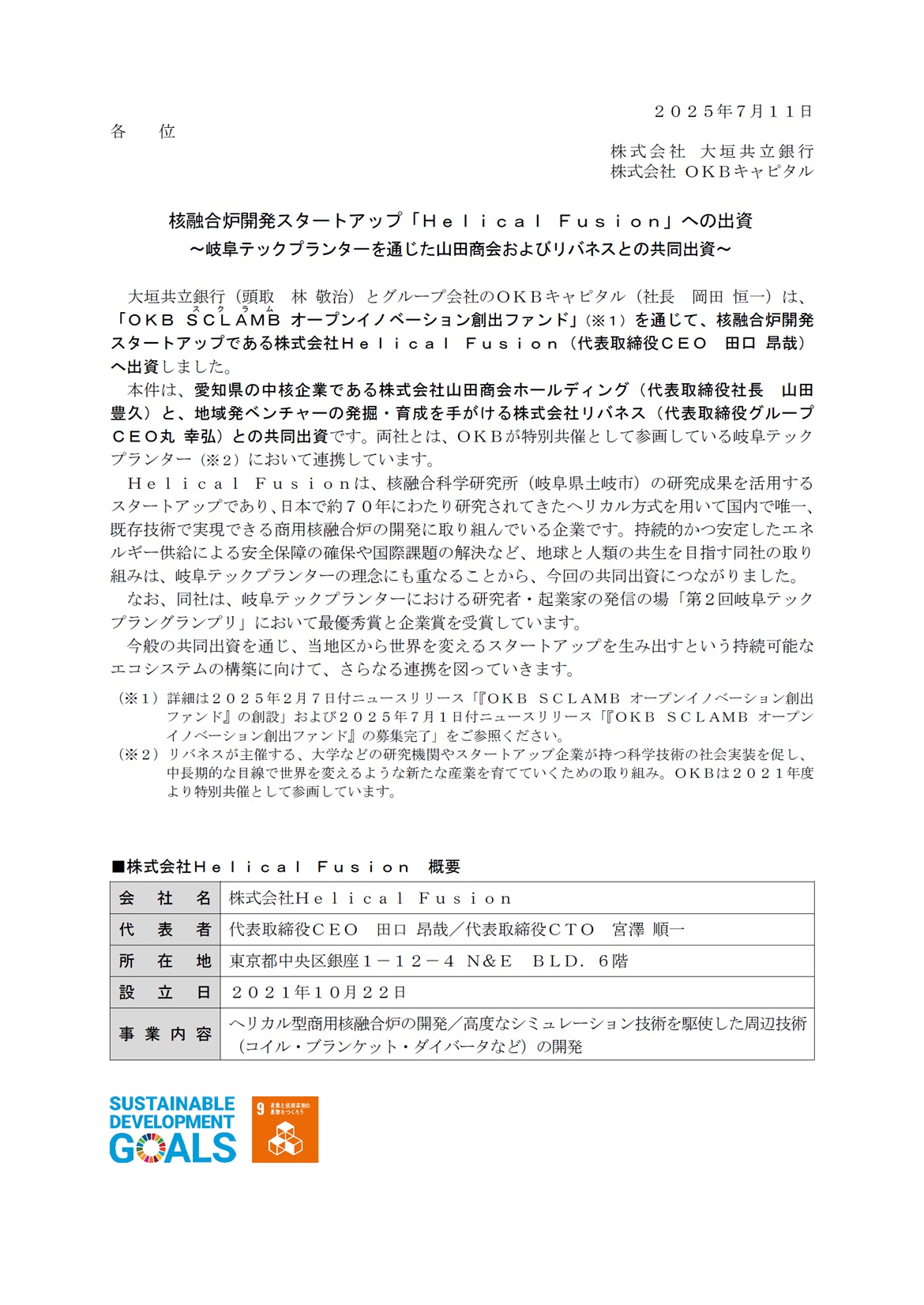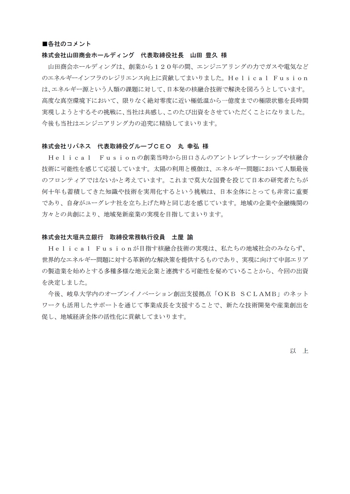 核融合炉開発スタートアップ「Helical Fusion」への出資