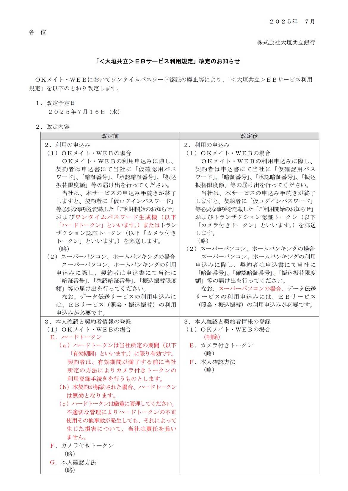「<大垣共立>EBサービス利用規定」改定のお知らせ