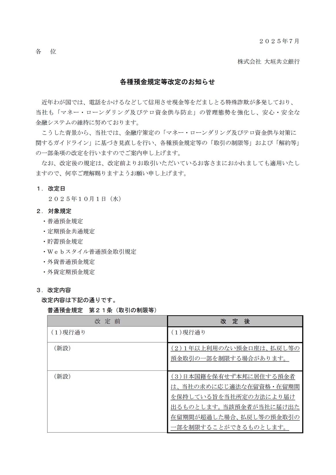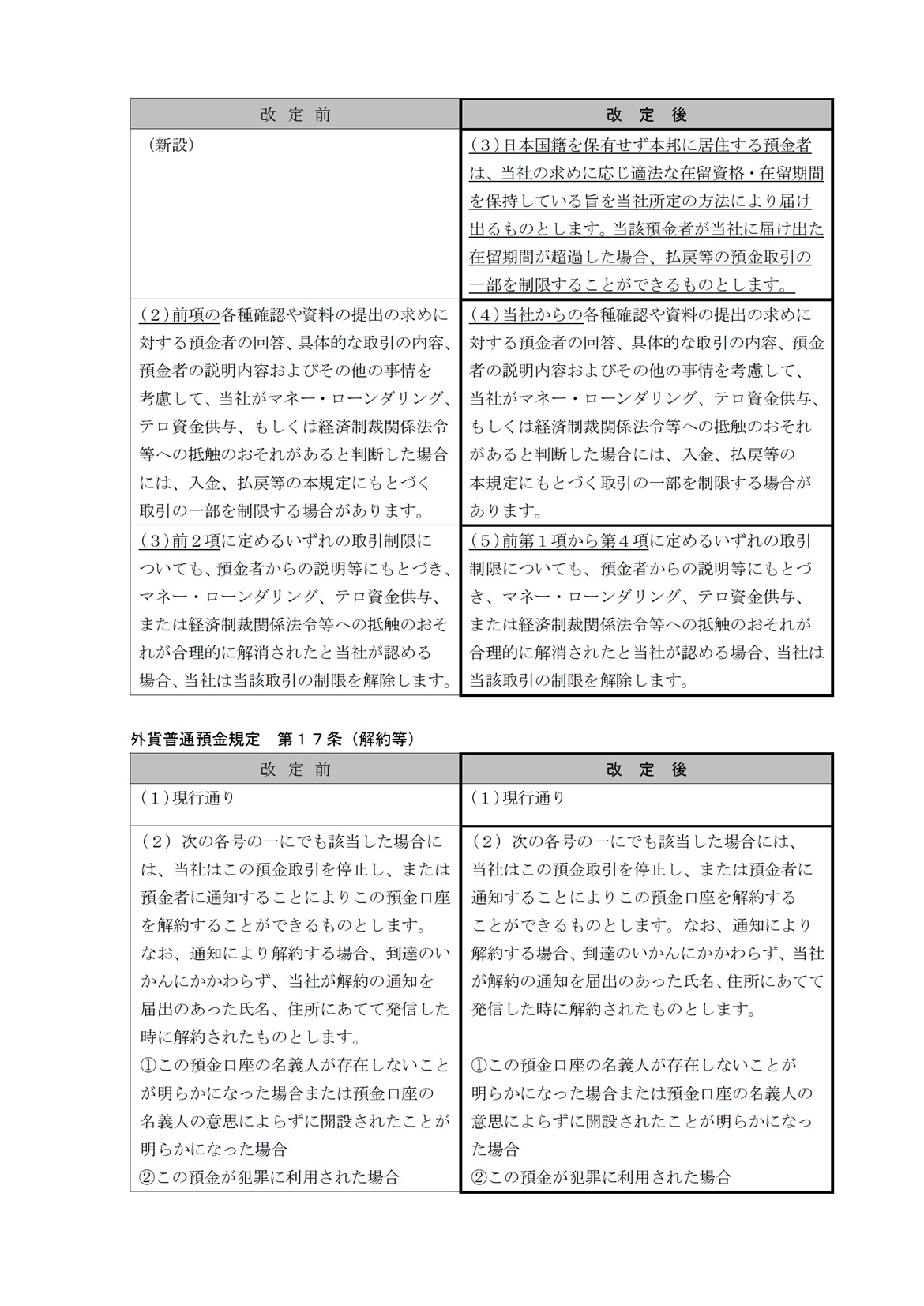 外国人のお客さまへの「在留期間満了日を超過した場合のお取引制限」および「口座開設のお手続き」に関する重要な・・・