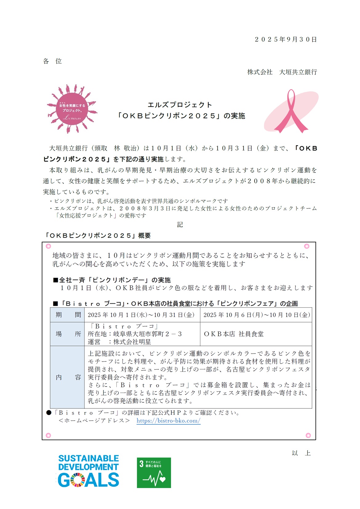 エルズプロジェクト「OKBピンクリボン2025」の実施