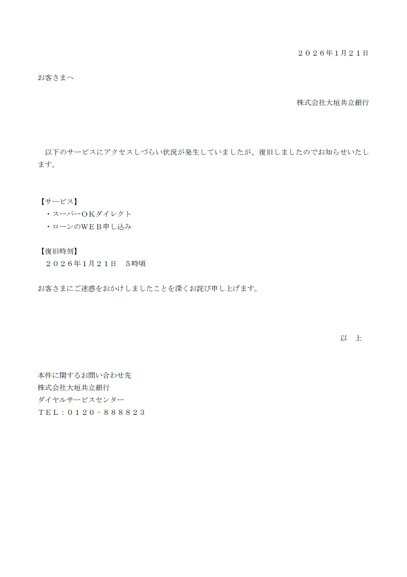 【復旧連絡】障害発生のお知らせ