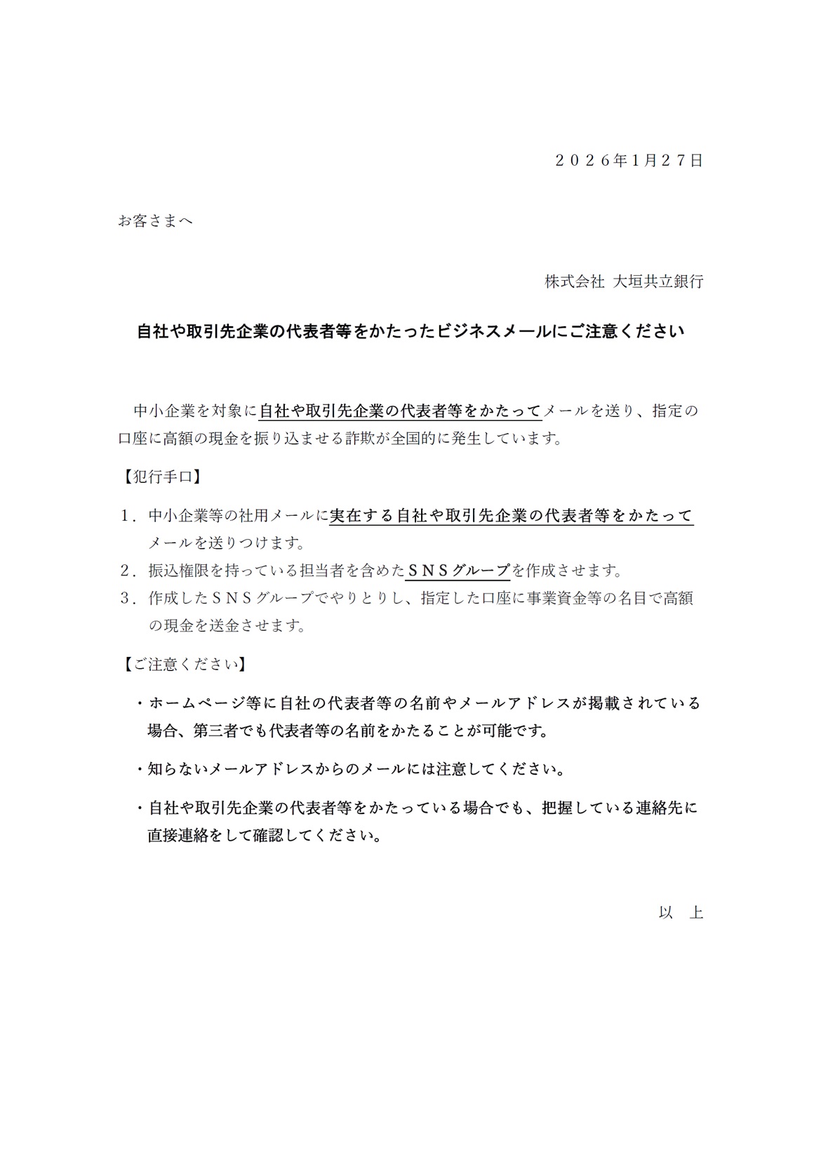 自社や取引先企業の代表者等をかたったビジネスメールにご注意ください