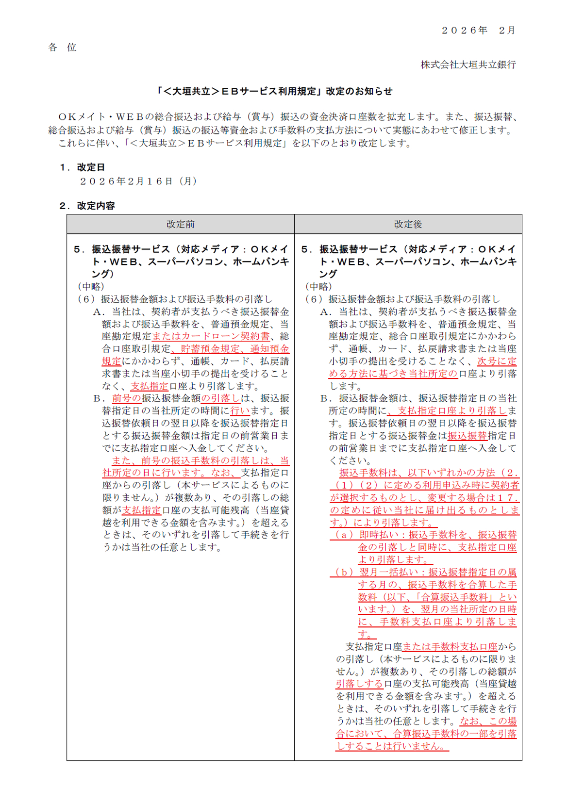 「<大垣共立>EBサービス利用規定」改定のお知らせ