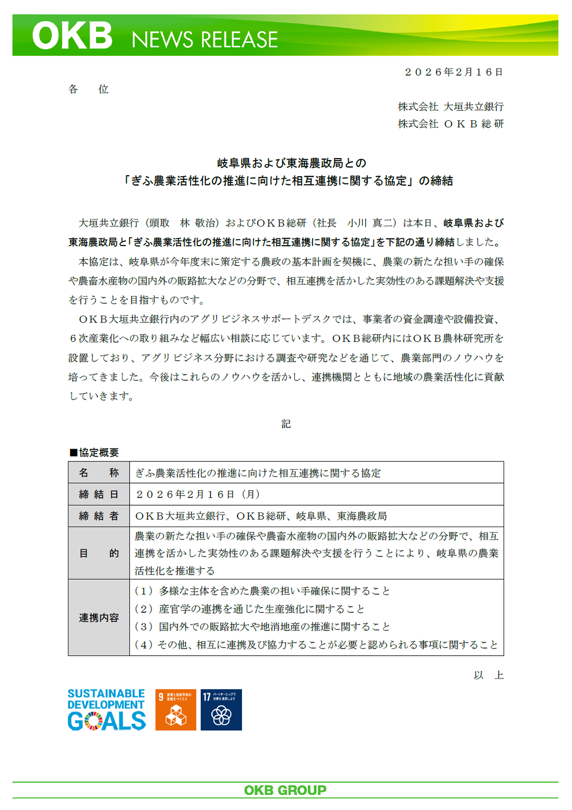 岐阜県および東海農政局との「ぎふ農業活性化の推進に向けた相互連携に関する協定」の締結